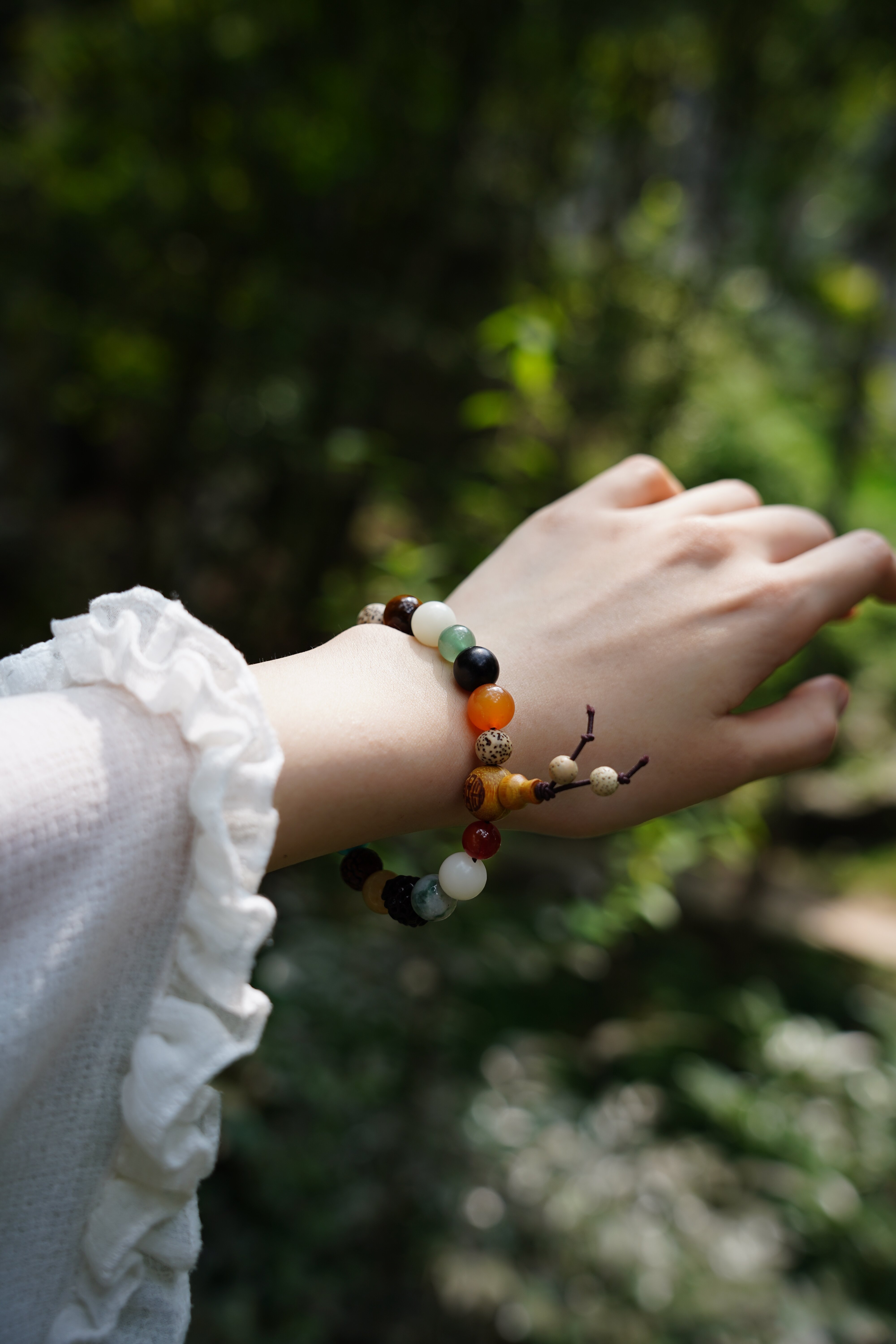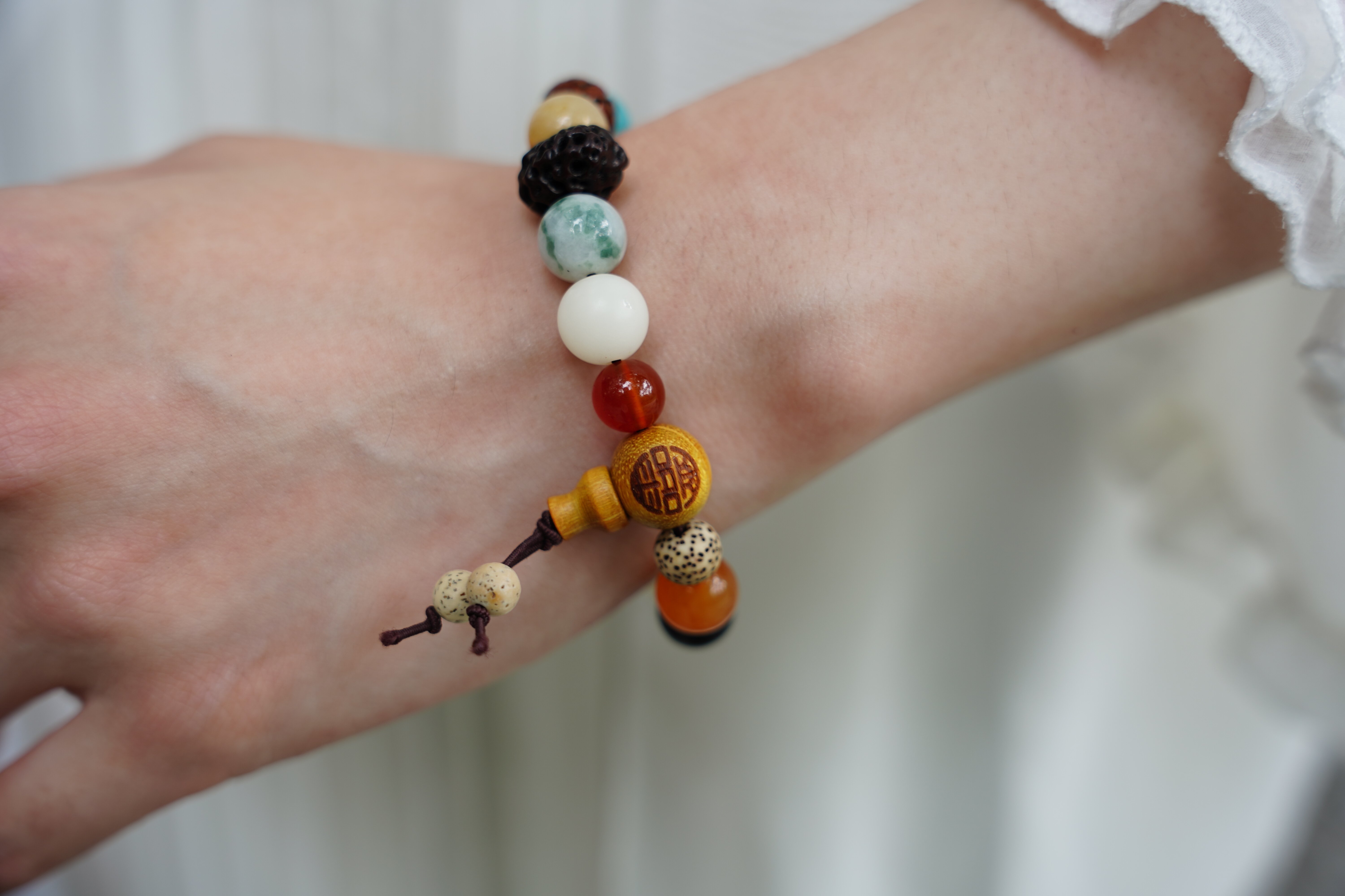 一开始的十八籽手串,仅仅由18种菩提子串起来,发展至今,其材质也发生了变化,增加了各色玉石玛瑙檀木。