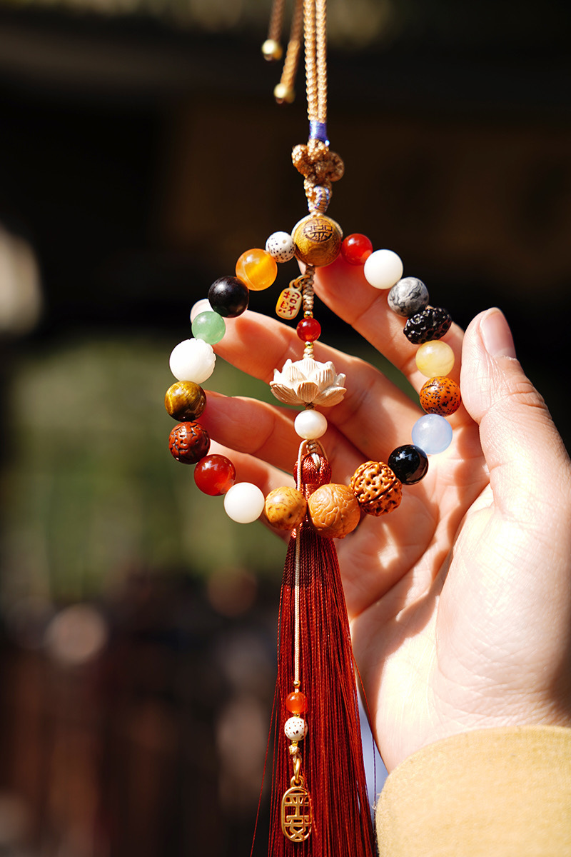 福宝的十八籽就此升级,将十八籽手串与灵隐寺莲花的形象结合,构成了我们的十八籽车挂。