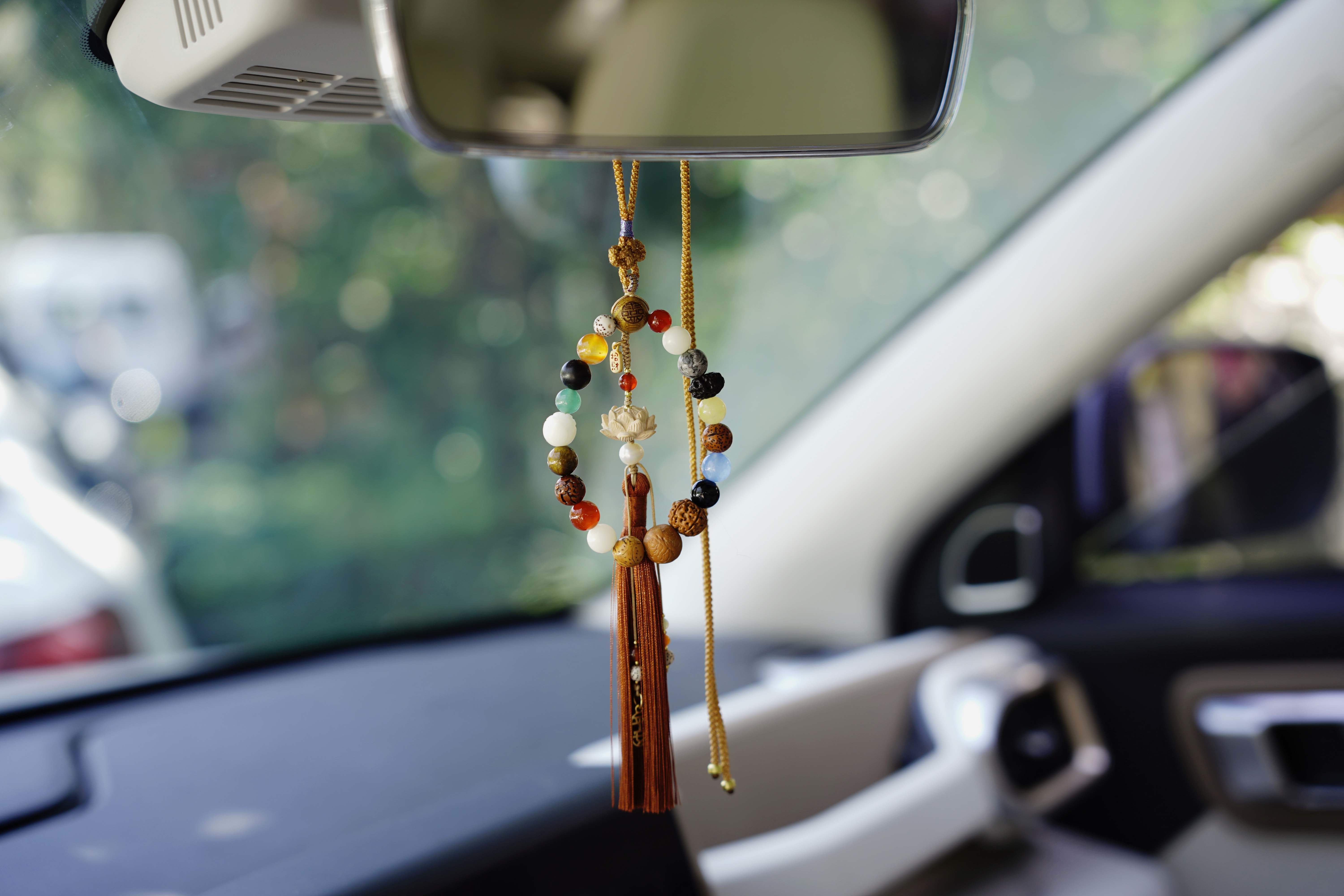 车挂上的中国结是冰花结,寓意吉祥如意💯
