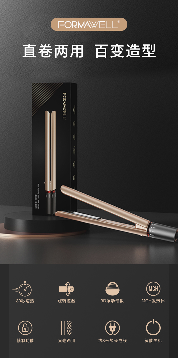 FORMAWELL福玛威尔二合一直卷两用直发器夹板