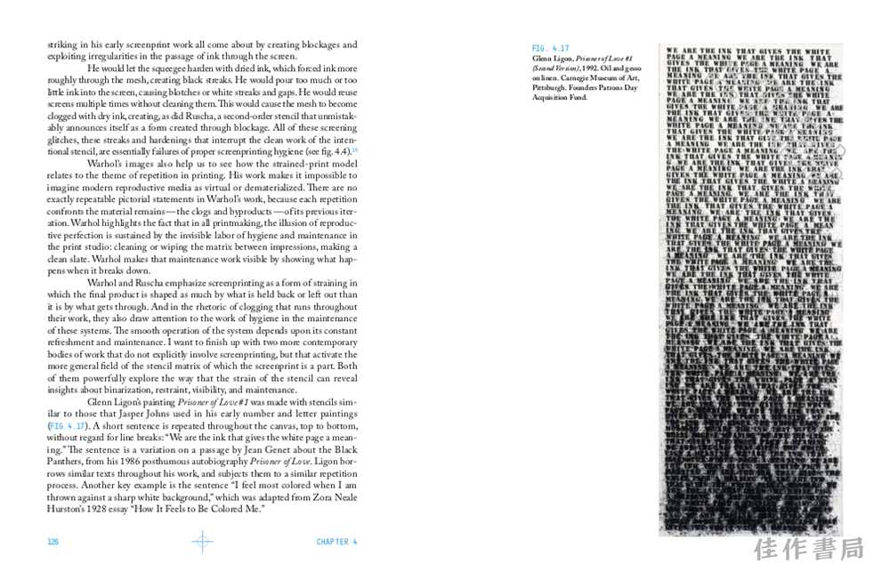 版画制作看似简单的物理过程实则伴随着一系列变化,这些变化表达了现代和当代艺术核心中的许多社会和概念关切。詹妮弗·罗伯茨(Jennifer Roberts)探讨了反转、分离和干扰等变化,并通过克里斯蒂安娜·鲍姆加特纳(Christiane Baumgartner)、大卫·哈蒙斯(David Hammons)、埃德加·希普·奥夫·伯兹(Edgar Heap of Birds)、贾斯珀·琼斯(Jasper Johns)、科丽塔·肯特(Corita Kent)、格伦·利贡(Glenn Ligon)、朱莉·梅赫雷图(Julie Mehretu)、罗伯特·劳森伯格(Robert Rauschenberg)以及许多其他在版画媒介边缘及之外工作的顶尖艺术家的作品,探索了这些动态。
