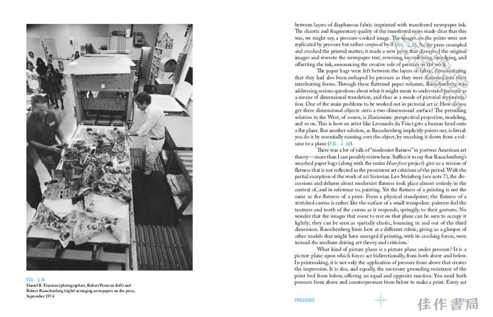 这本图文并茂的著作专注于版画制作过程中的物质和空间变化,而非其可复制性,探讨了版画、绘画和雕塑之间的联系,以及纯艺术、工业艺术、装饰艺术和家居艺术之间的联系。罗伯茨在全书中不断探讨艺术家们从版画中学到了什么,以及我们反过来又能从他们那里学到什么。