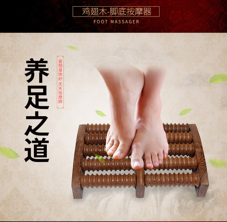 天然鸡翅木脚底按摩器 滚轮式木质家用穴位搓排足底按摩器