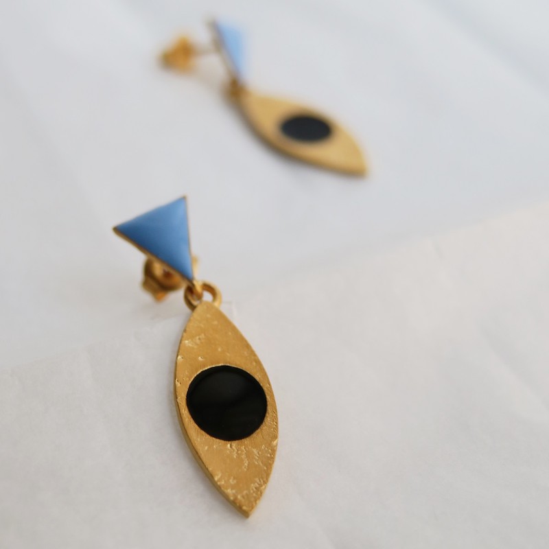 订购6周到|Joidart-SOMNI-蓝色三角 黑金眼形 珐琅 吊坠 耳环[西班牙设计师]