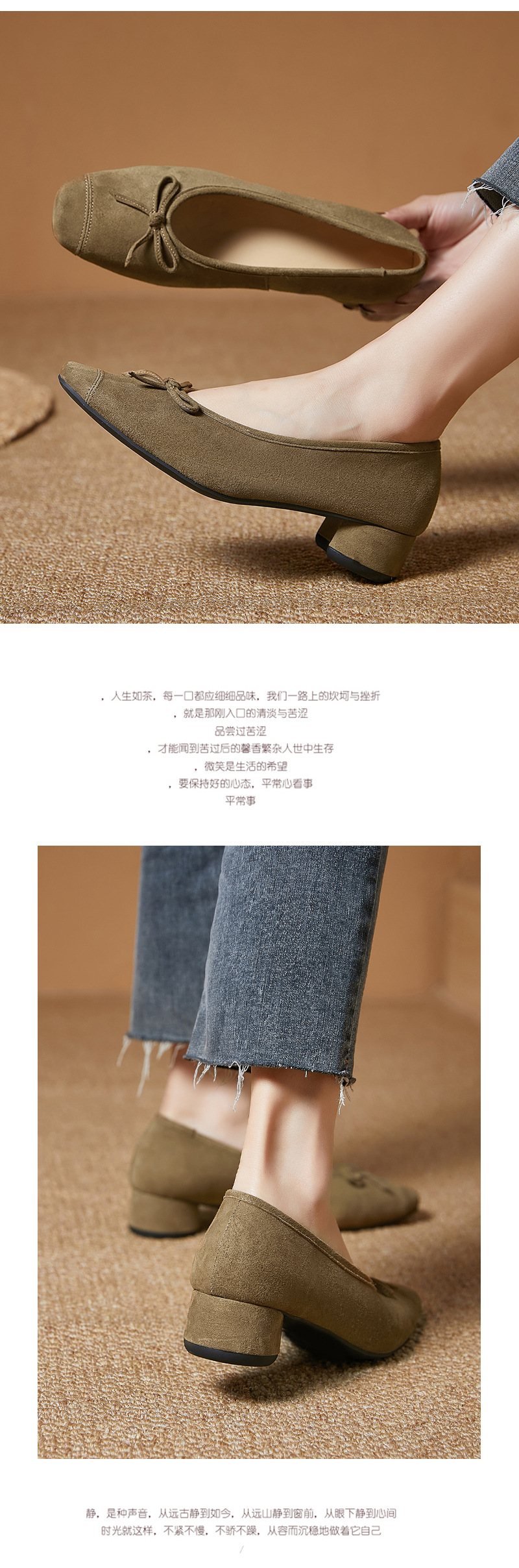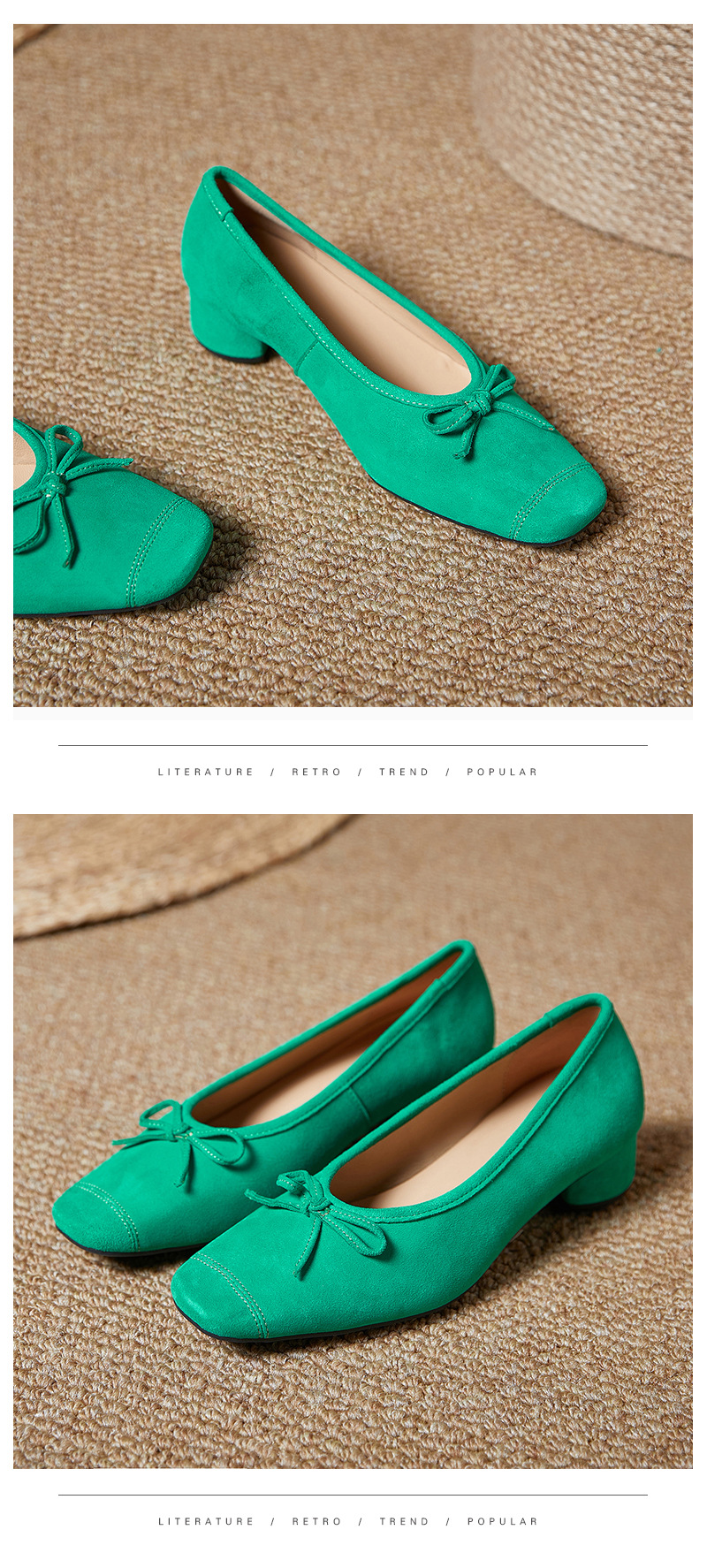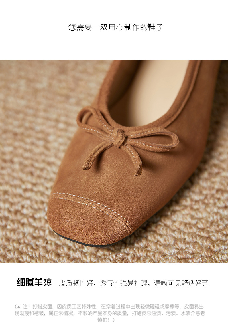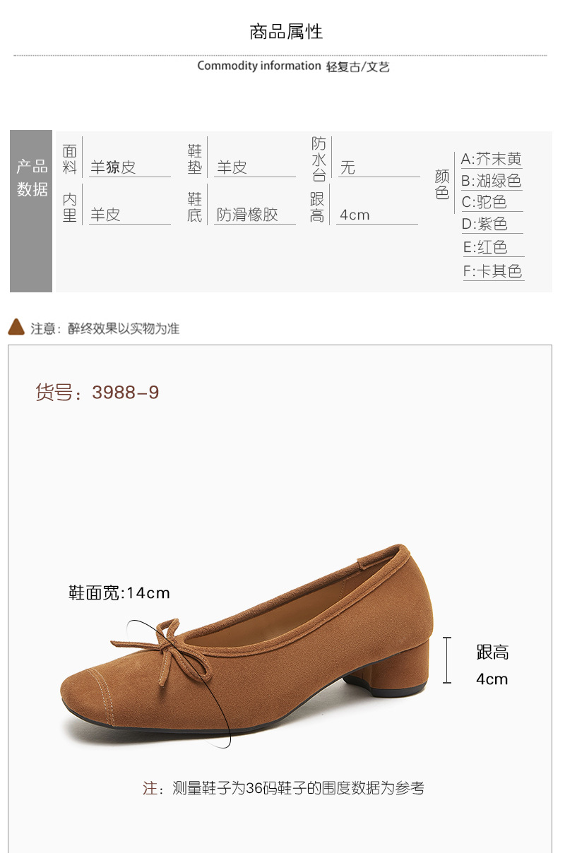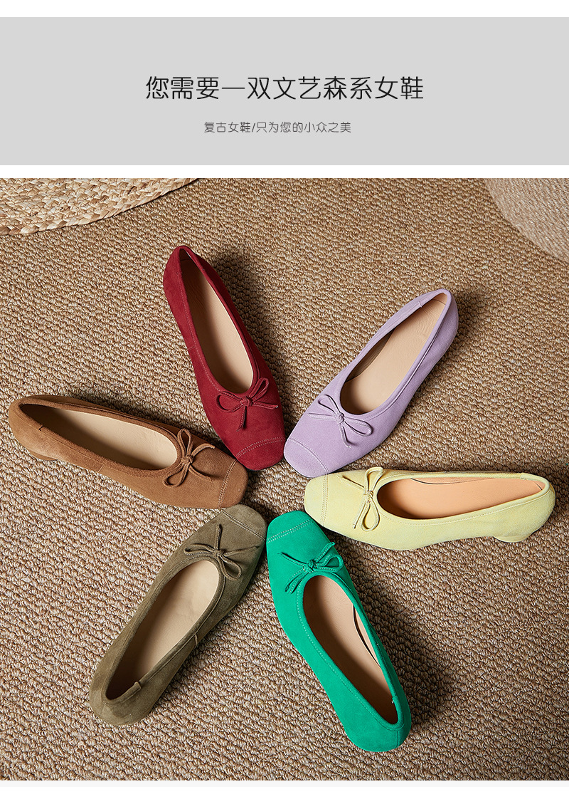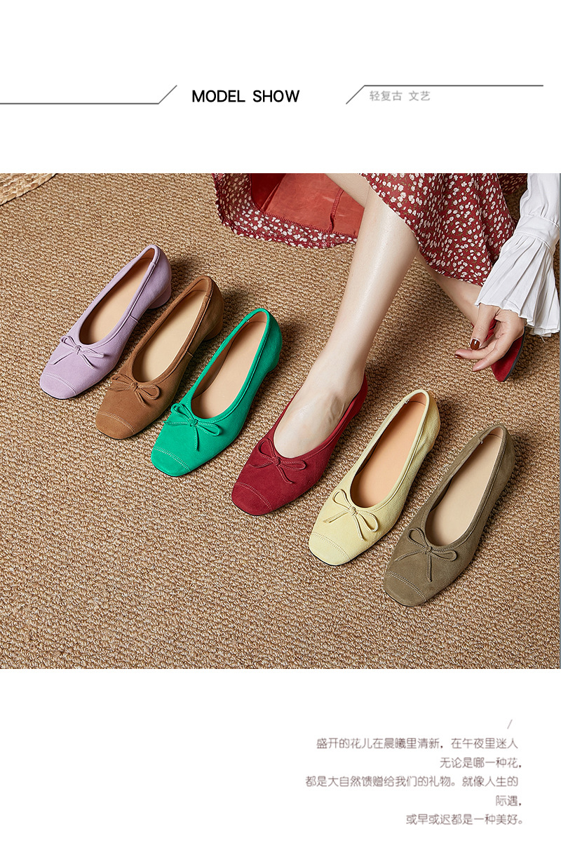 2025春夏新款粗跟浅口女鞋!蝴蝶结羊绒面时尚仙女绿色芭蕾舞鞋!