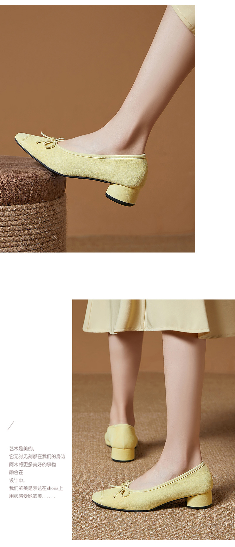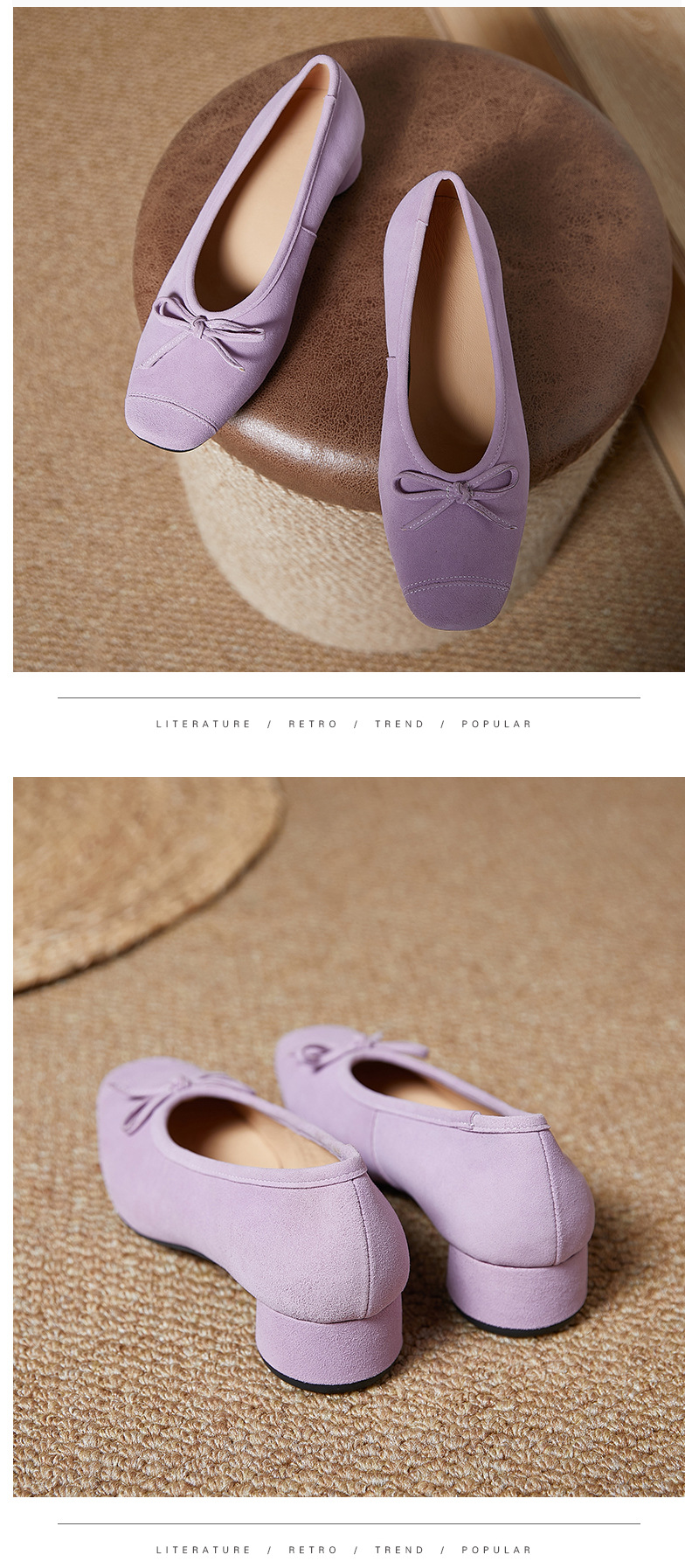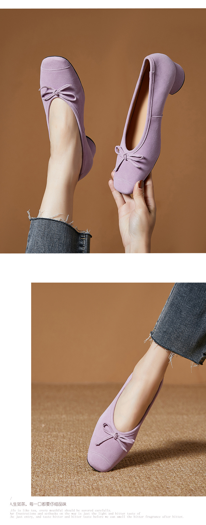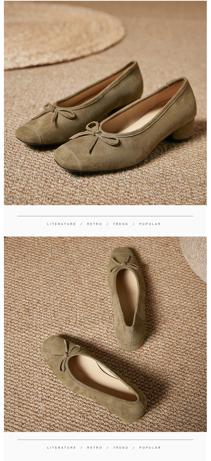 2025春夏新款粗跟浅口女鞋!蝴蝶结羊绒面时尚仙女绿色芭蕾舞鞋!