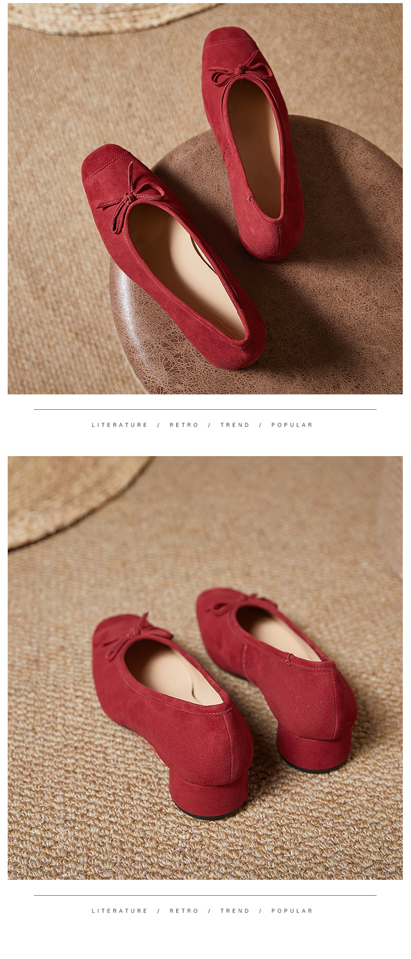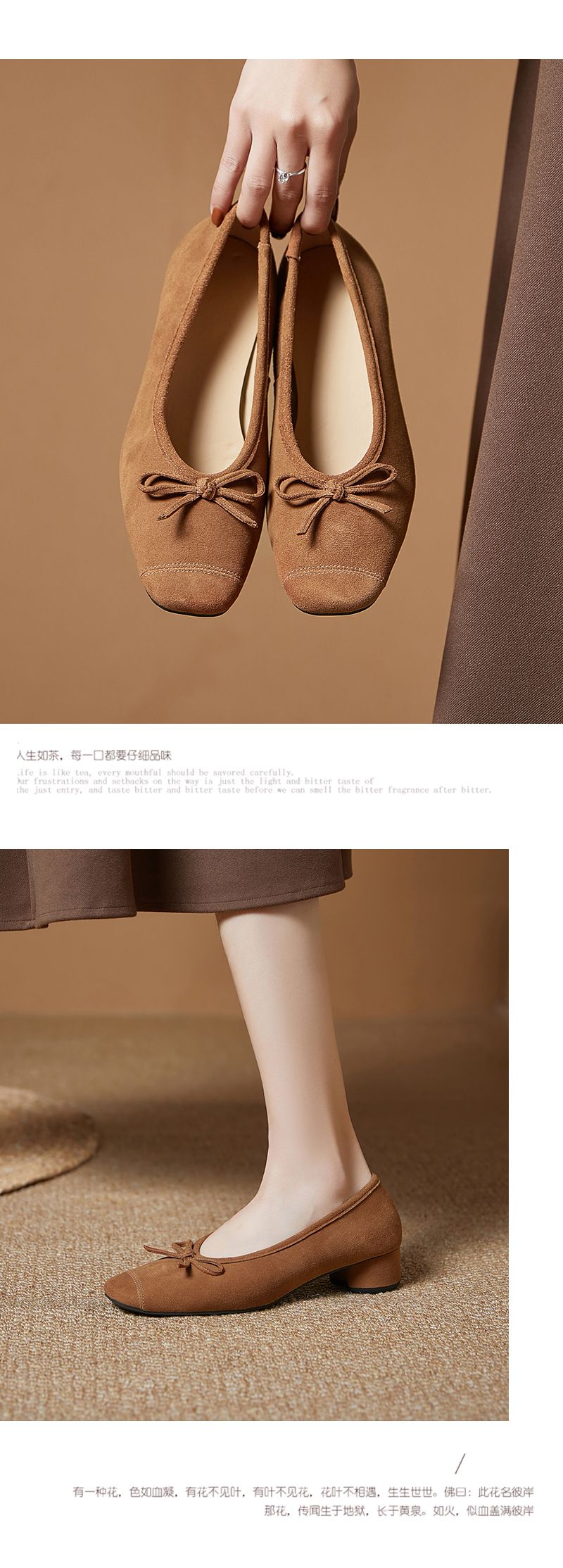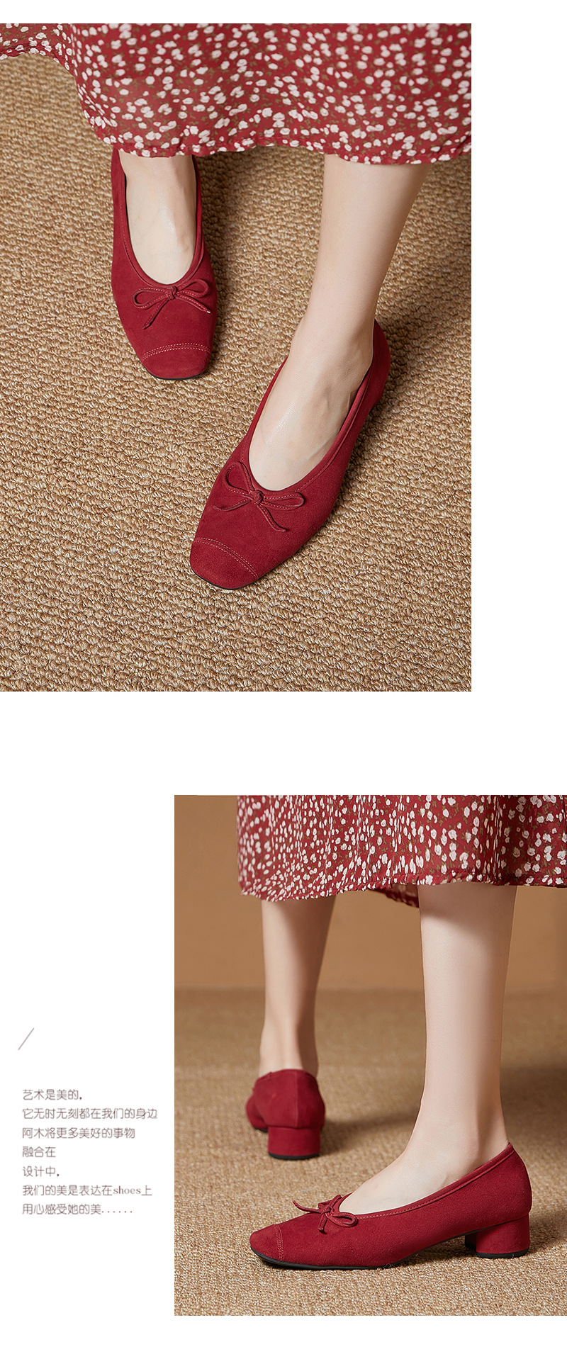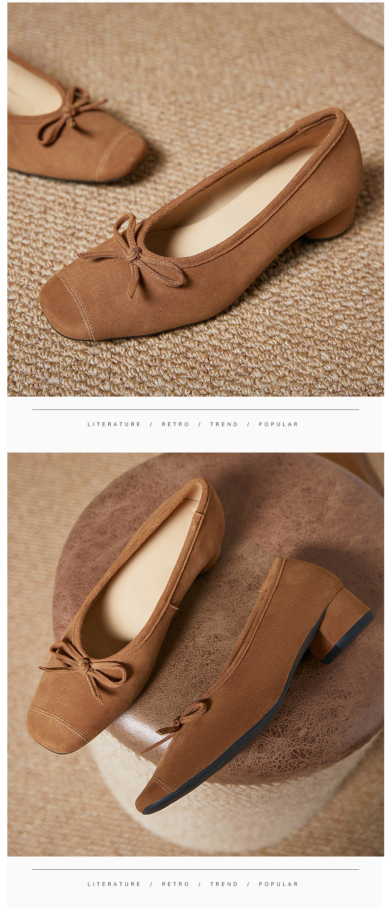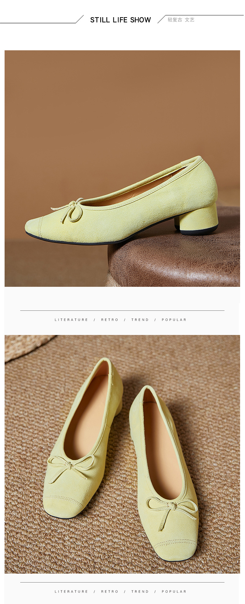 2025春夏新款粗跟浅口女鞋!蝴蝶结羊绒面时尚仙女绿色芭蕾舞鞋!