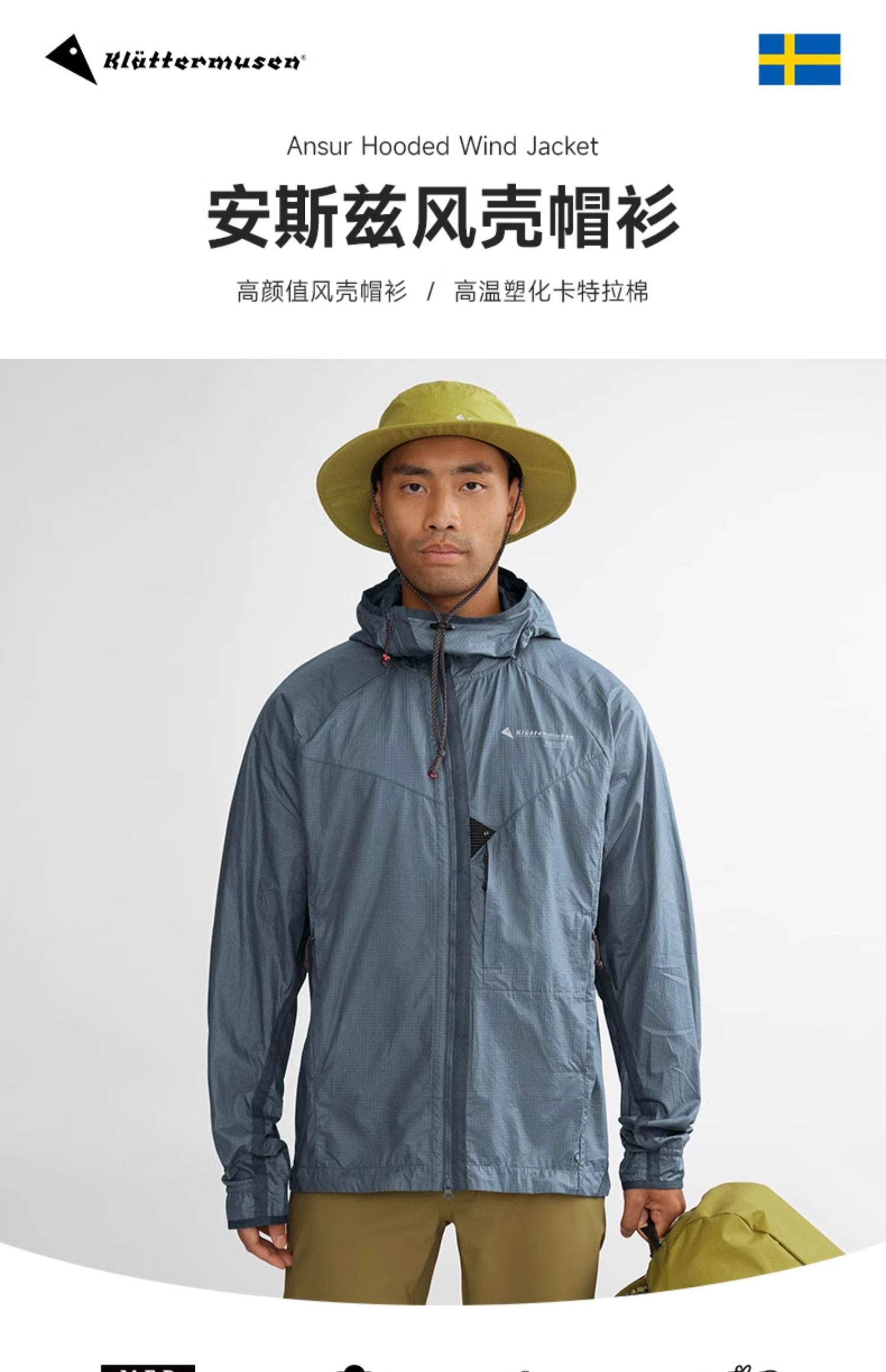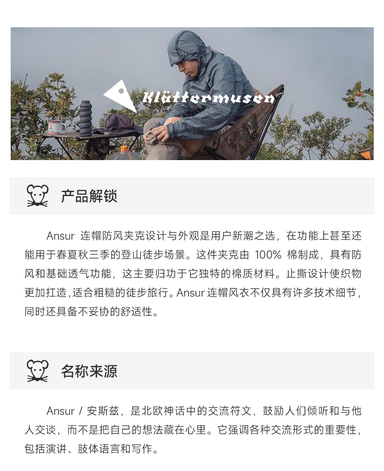 KLATTERMUSEN/攀山鼠ansur安斯兹防风运动衣带帽风壳男10653M