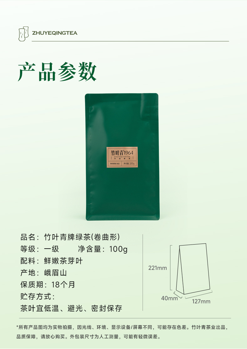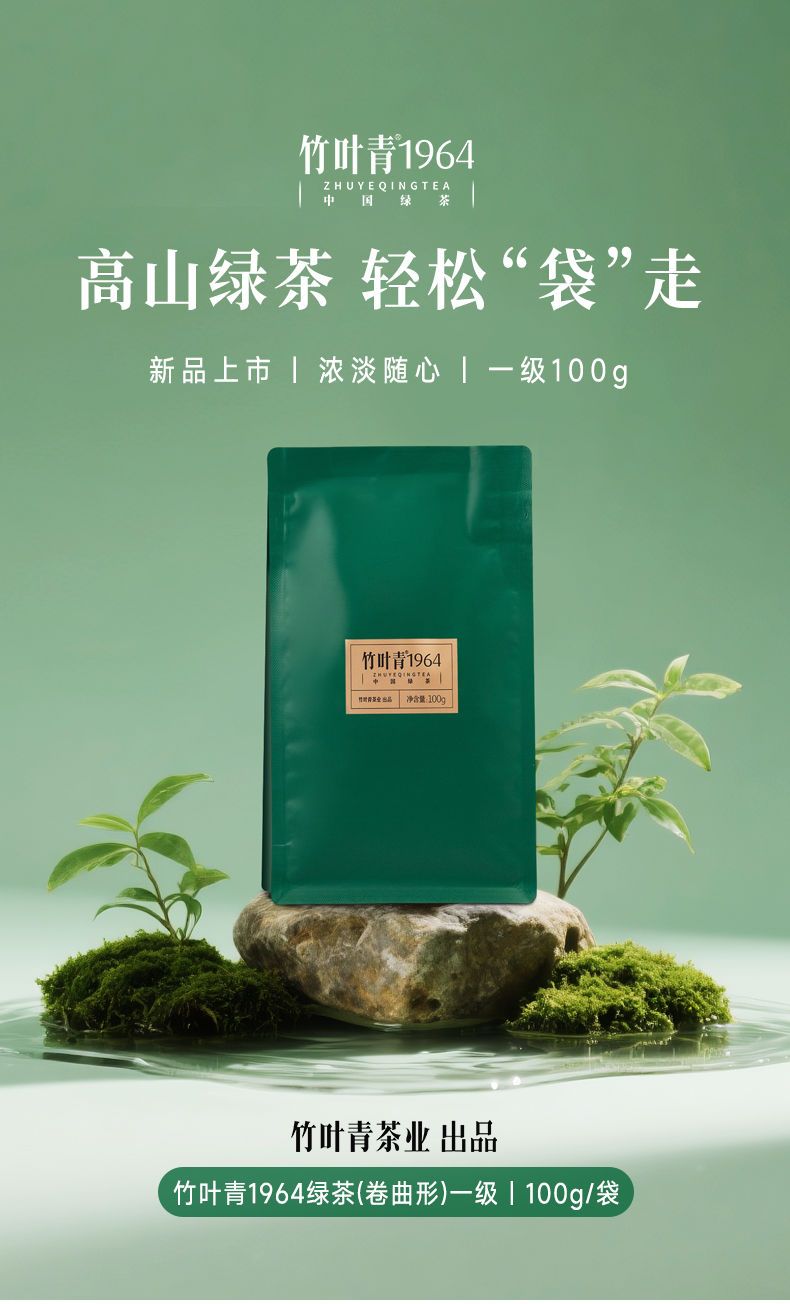 竹叶青1964绿茶一级茶叶袋装四川峨眉山茶自饮口粮茶叶100g
