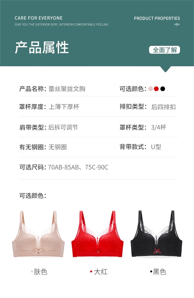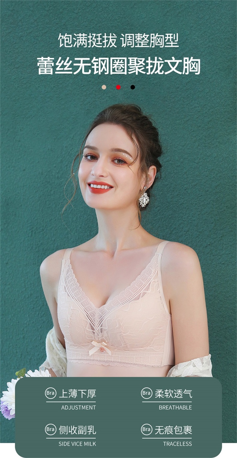 雅黛丽内衣女小胸聚拢显胸大胸罩无钢圈蕾丝美背收副乳调整型胸罩