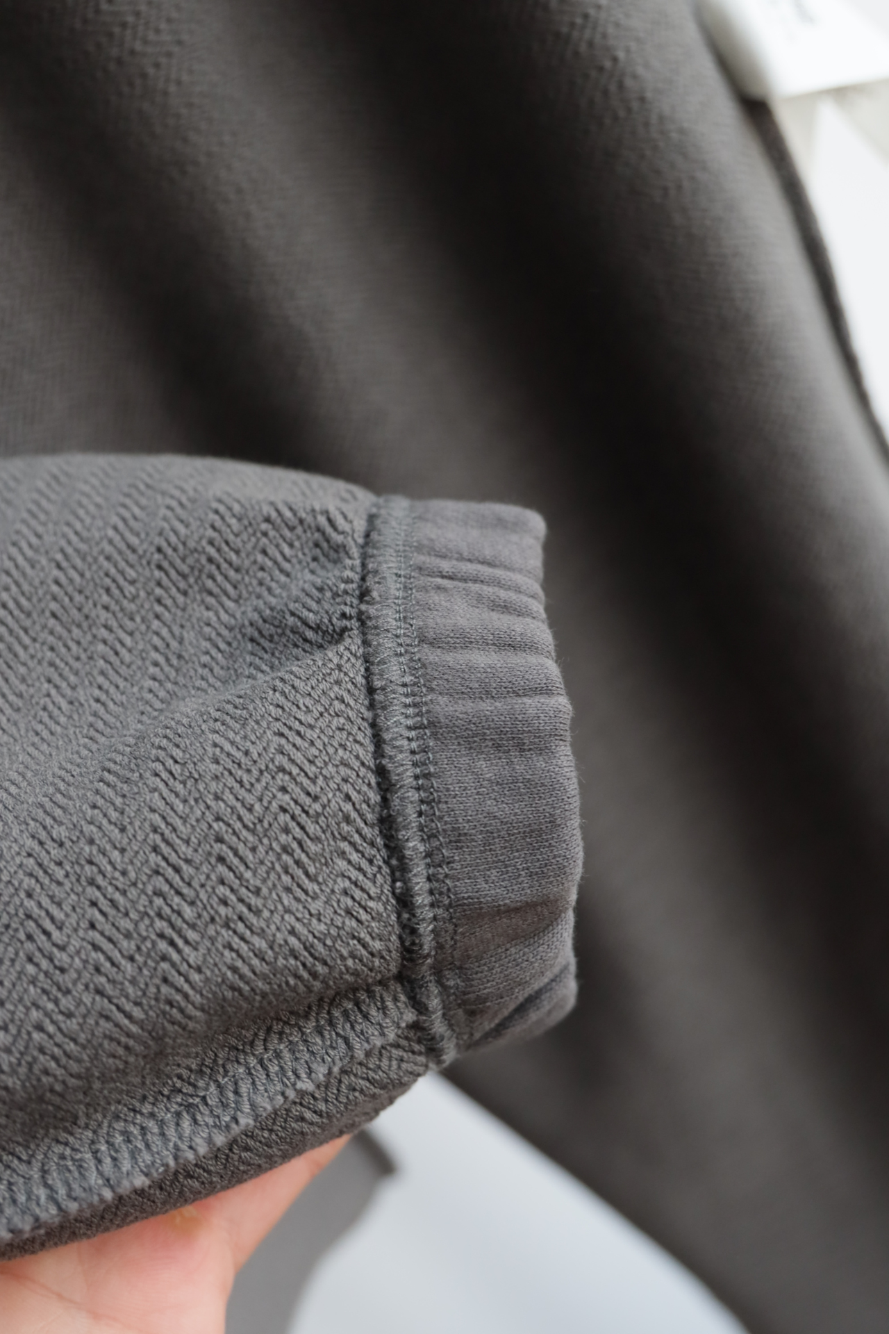 100%纯棉面料,内里人字纹股线厚毛圈,份量手感十足