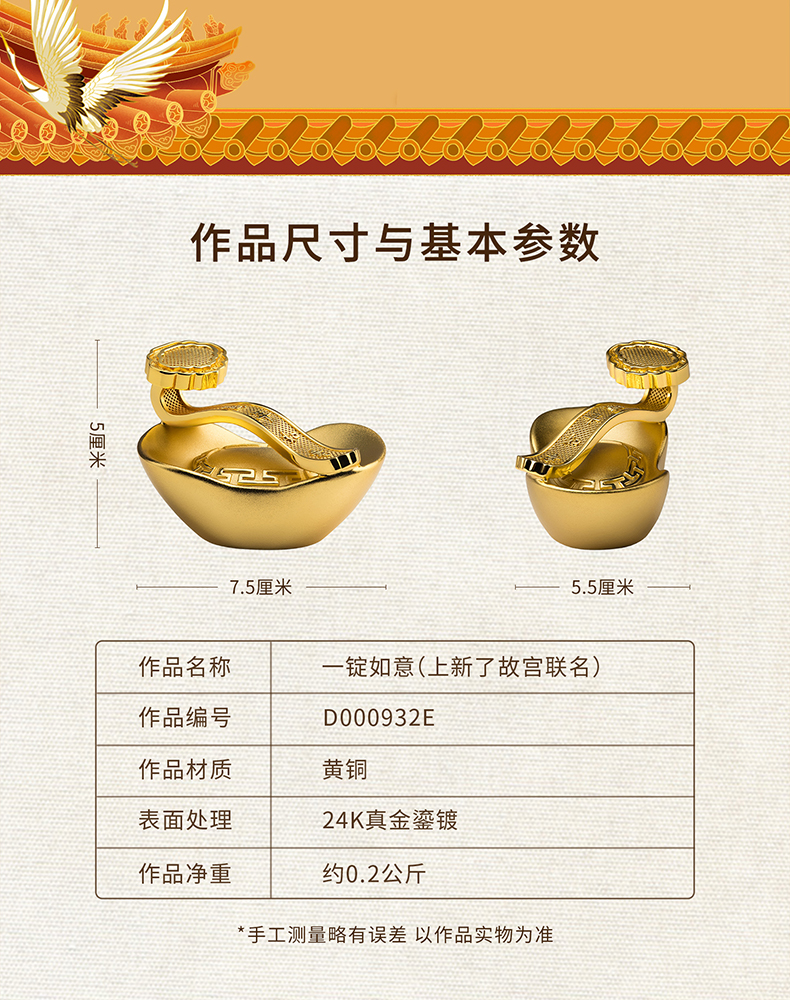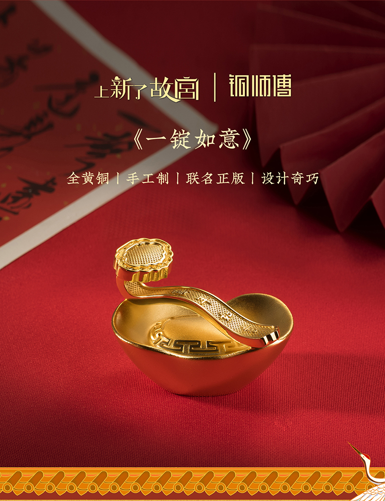铜师傅《一锭如意》上新了故宫联名 元宝如意摆件家居开业礼品