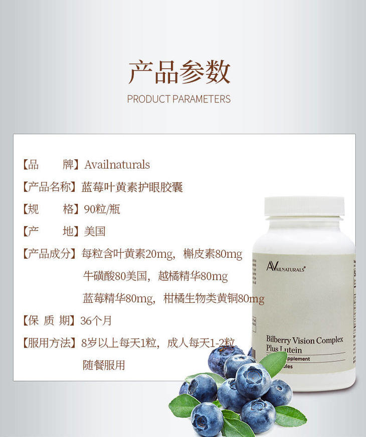 618【保税区】【电脑不再闪瞎眼】美国AV蓝莓护眼精华叶黄素专利儿童近视蓝莓护眼越橘保护视力胶囊