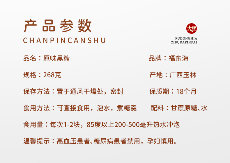福东海 黑糖红糖块原味黑糖姜茶红糖268g