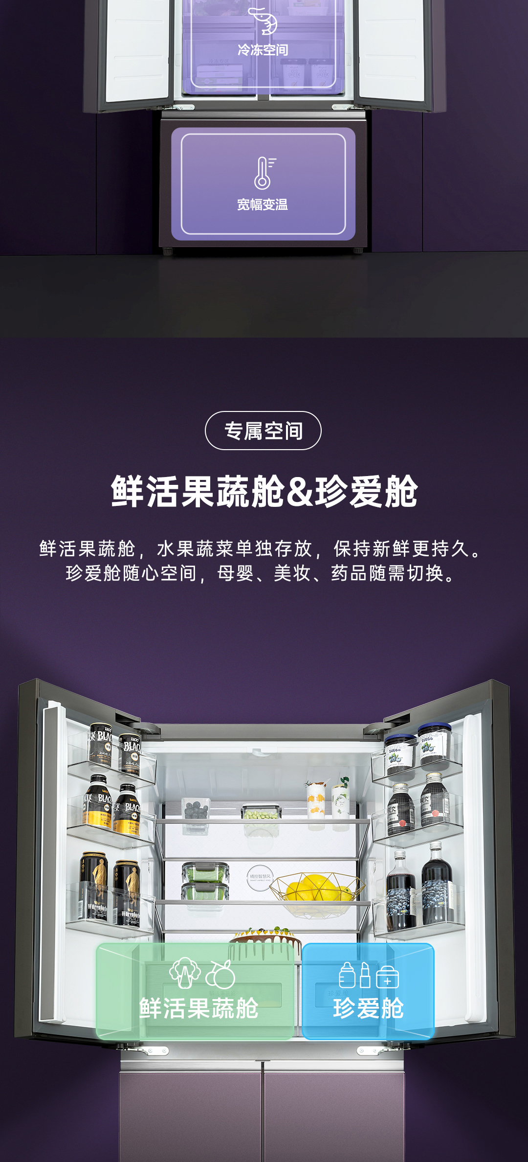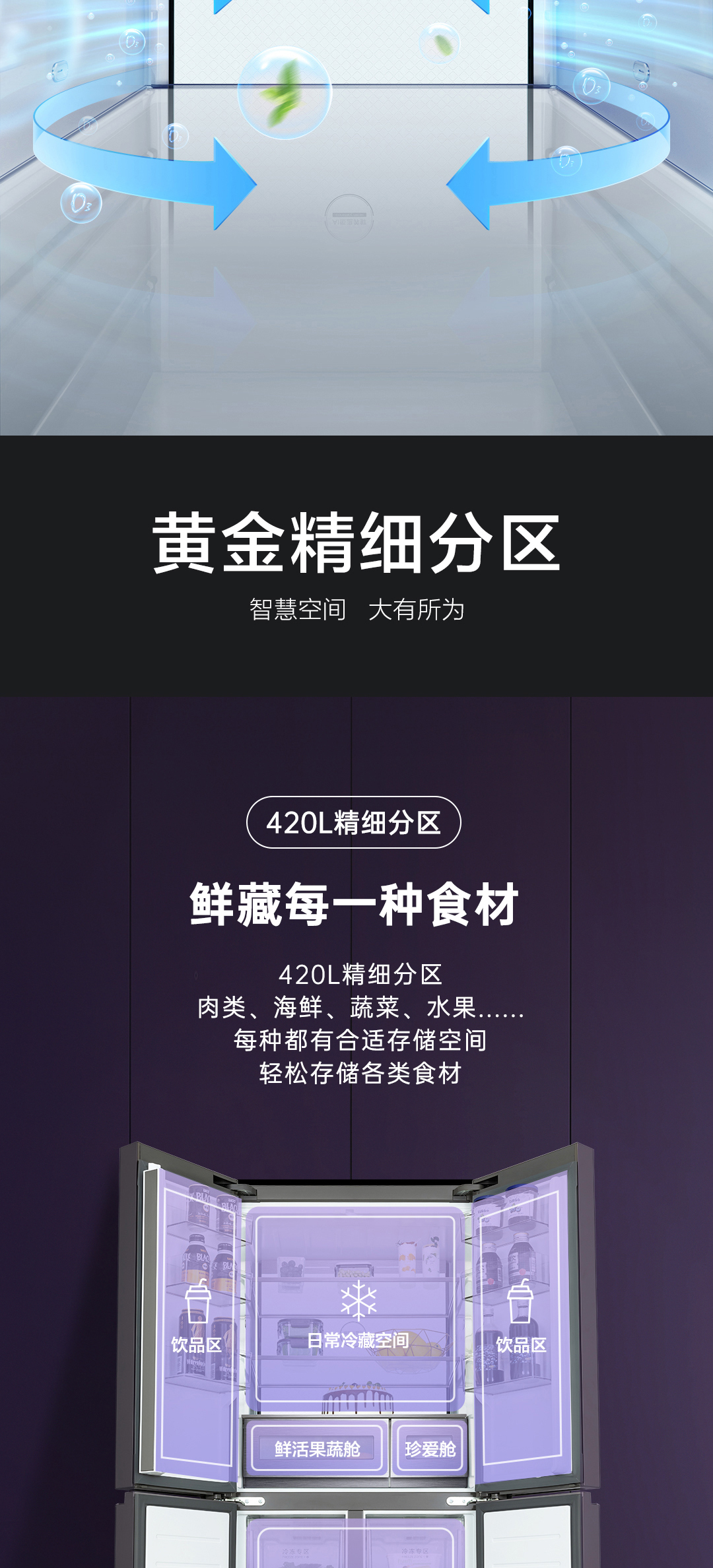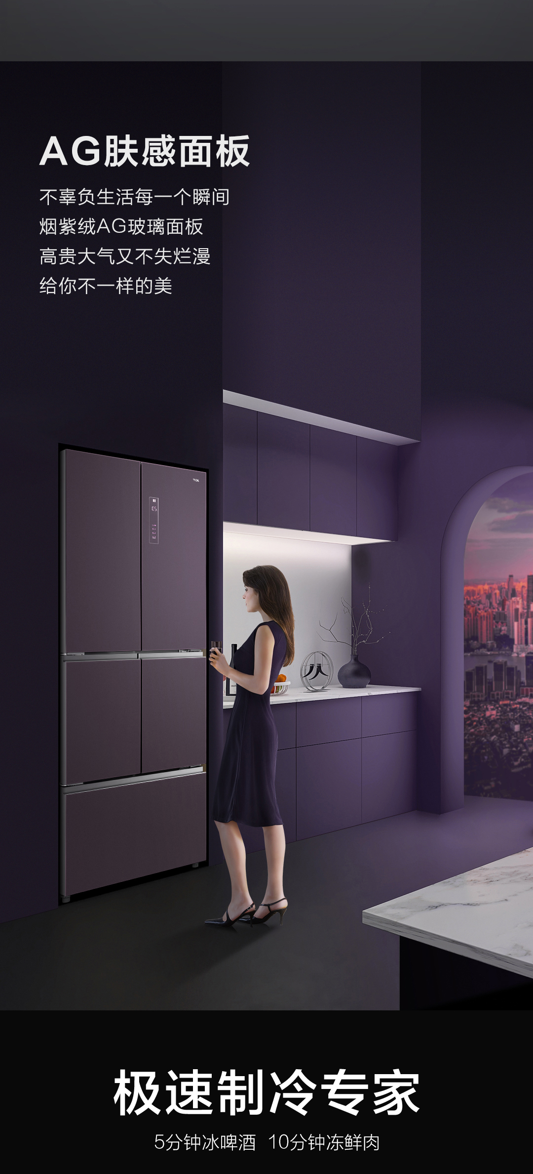 【TCL冰箱】TCL R420C6-G烟紫绒 420升急冷速冻法式多门冰箱