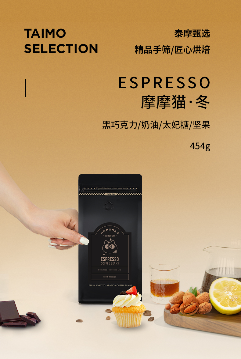 泰摩咖啡冬猫意式精品阿拉比卡拼配特浓缩咖啡豆新鲜烘焙批发454g