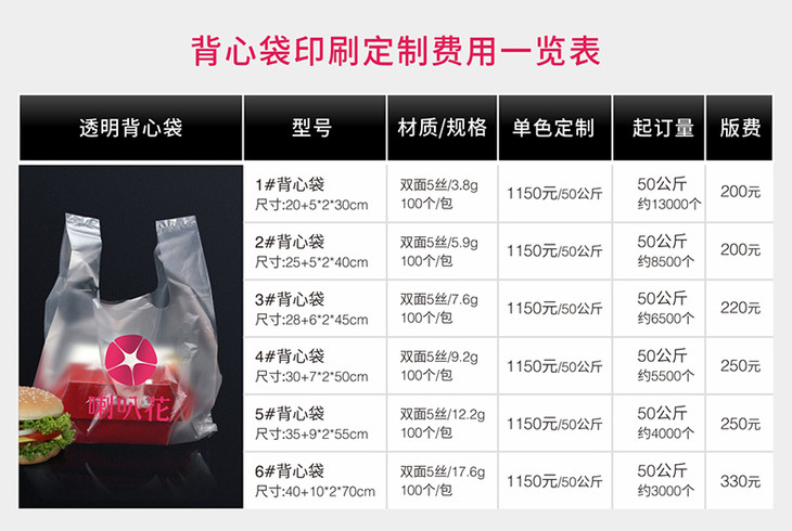 喇叭花透明手提塑料袋子背心马甲袋食品加厚大打包装定做订制logo100个