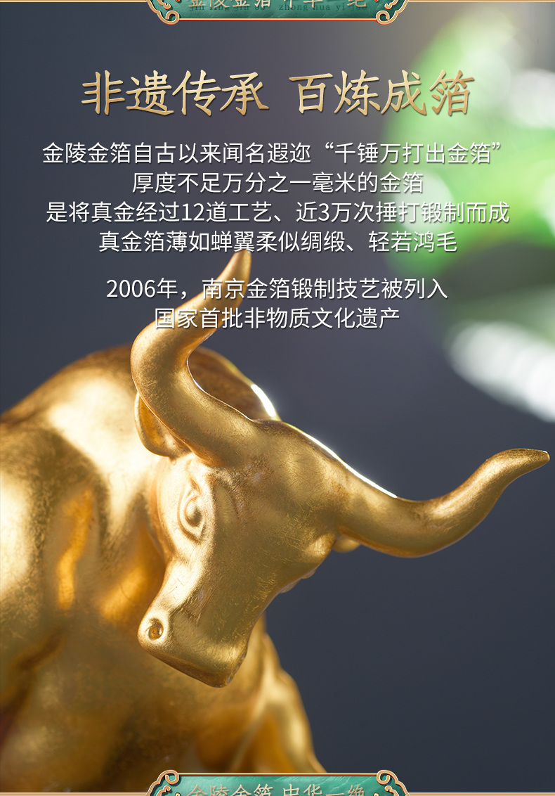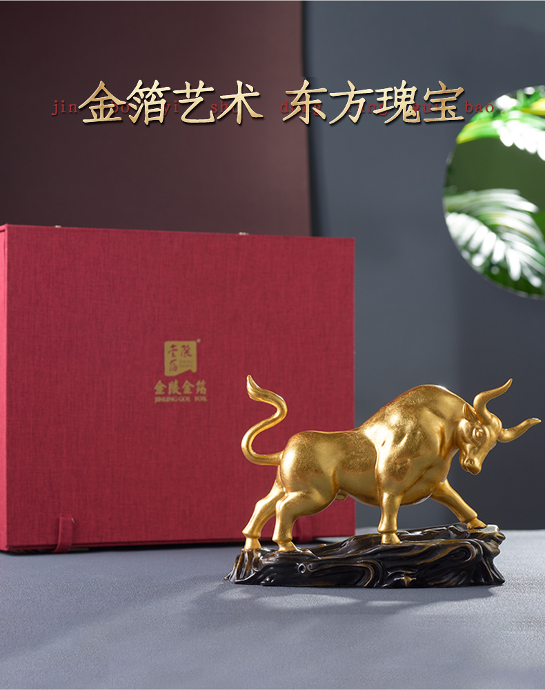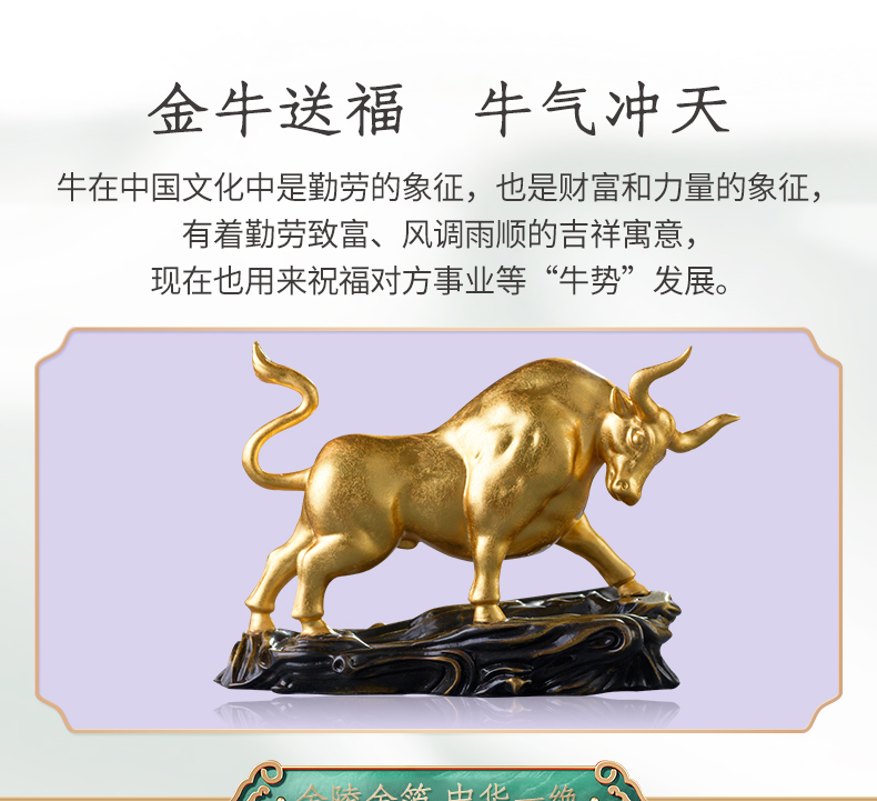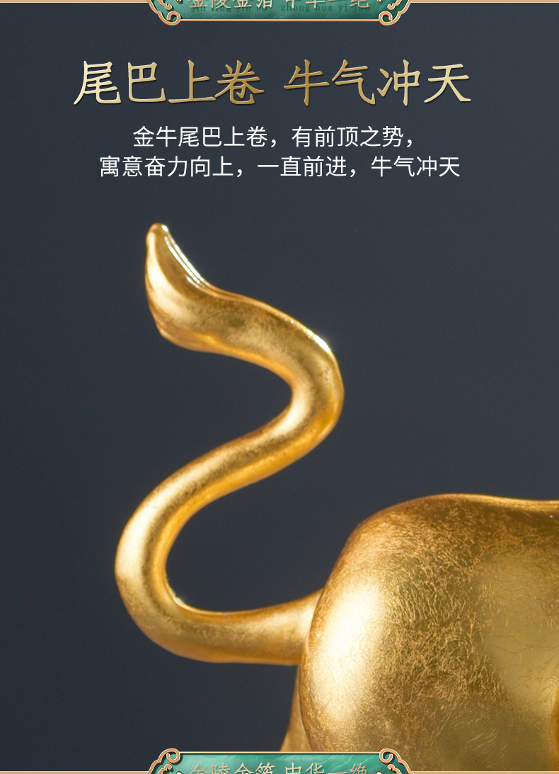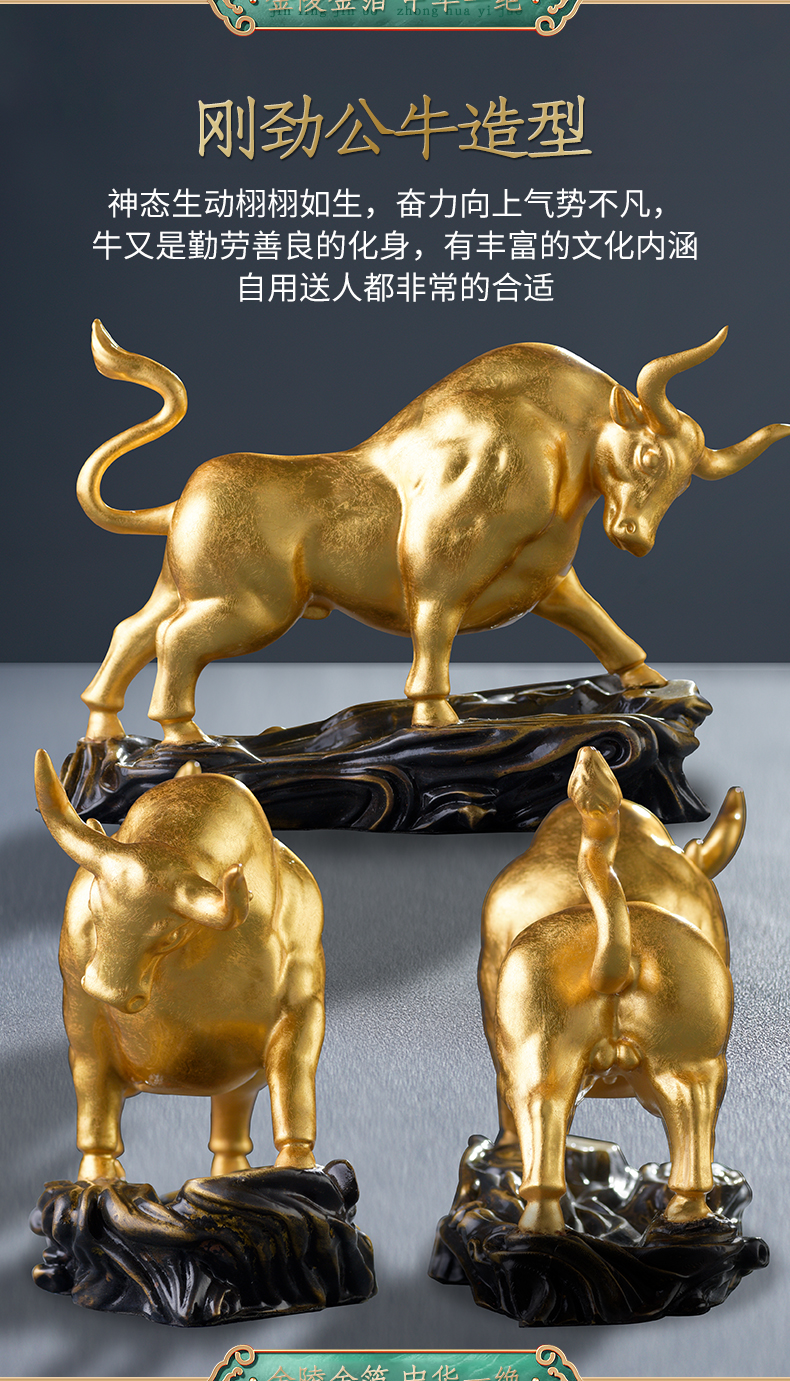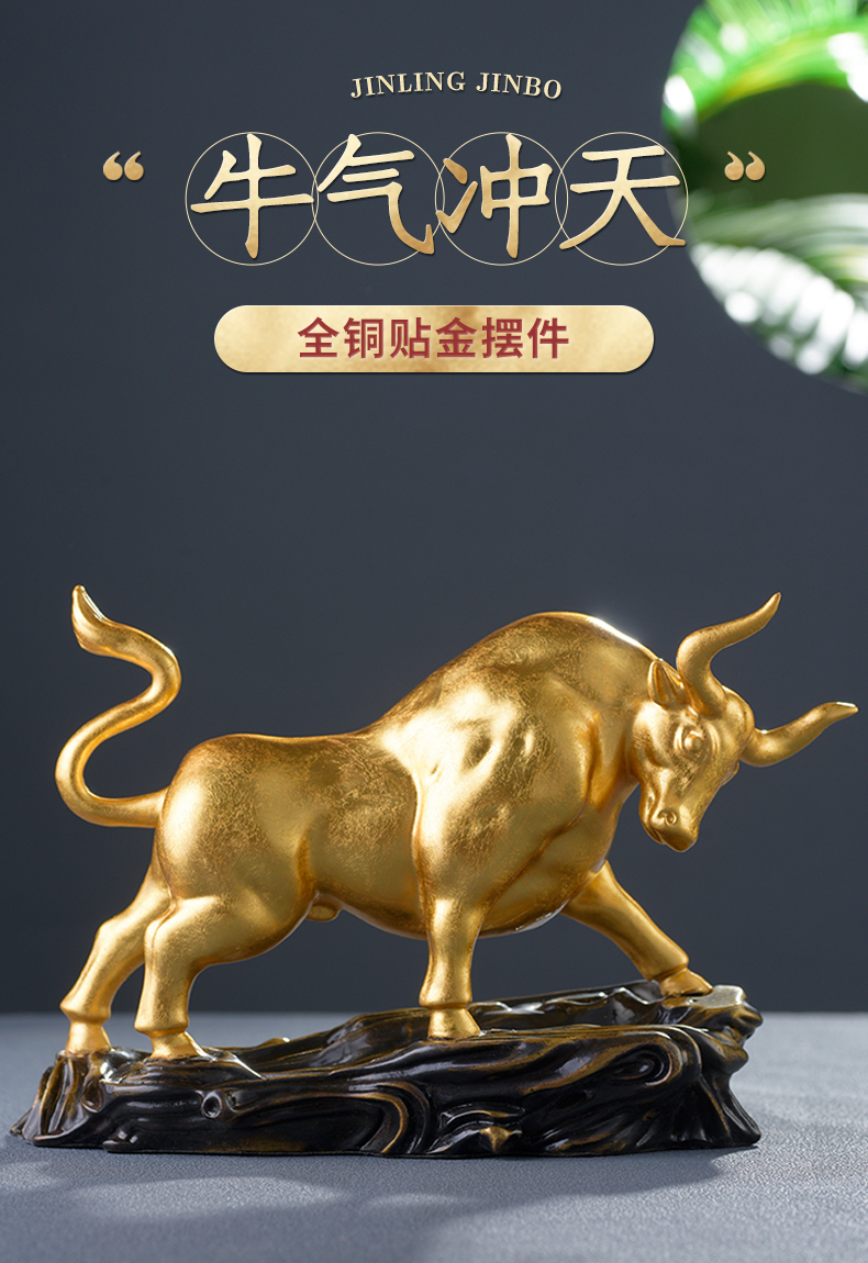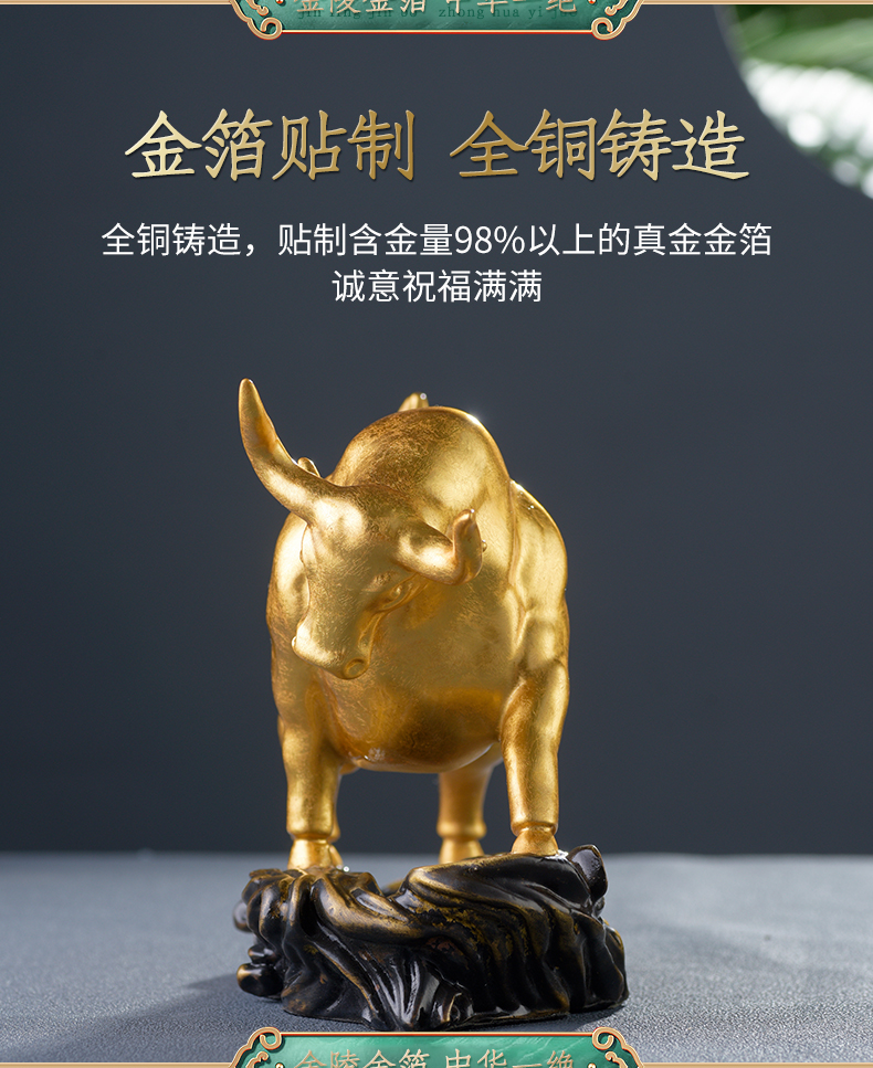 贴金纯铜牛摆件开业礼物办公桌办公室装饰牛转乾坤牛气冲天生肖