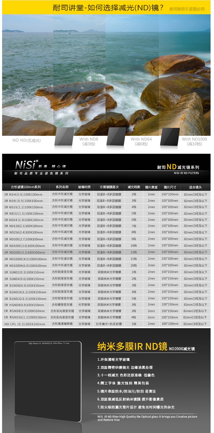 IR ND镜 耐司100mm ND8-1000000玻璃插片滤镜 中灰密度镜 方镜中灰镜 方形减光镜