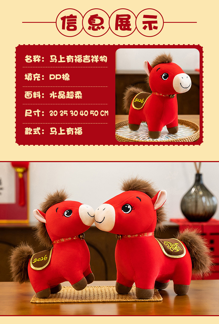 【马年限定❗️马上有福吉祥物】吉祥喜庆,美好寓意,带福回家!新年小马公仔2026毛绒玩具生肖马玩偶布娃娃公司年会礼品