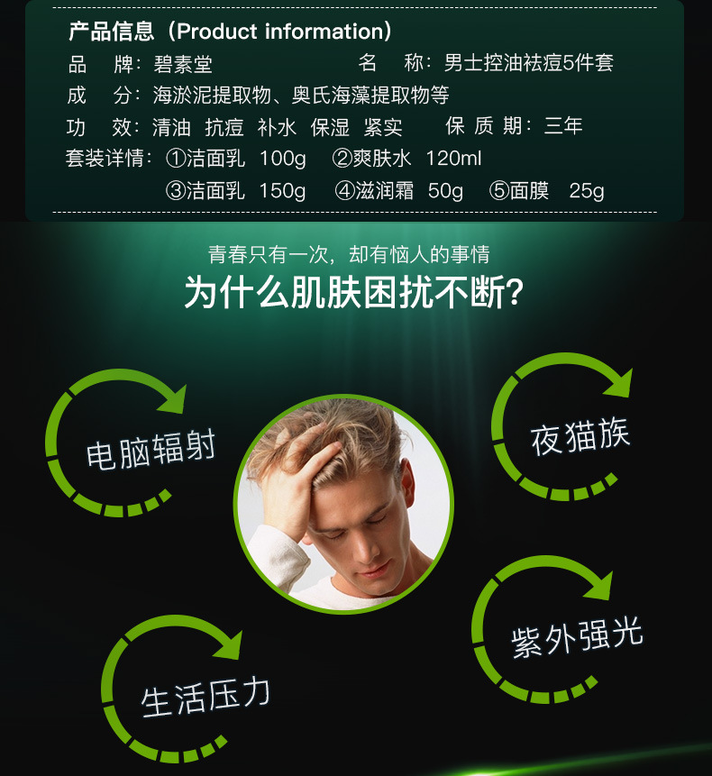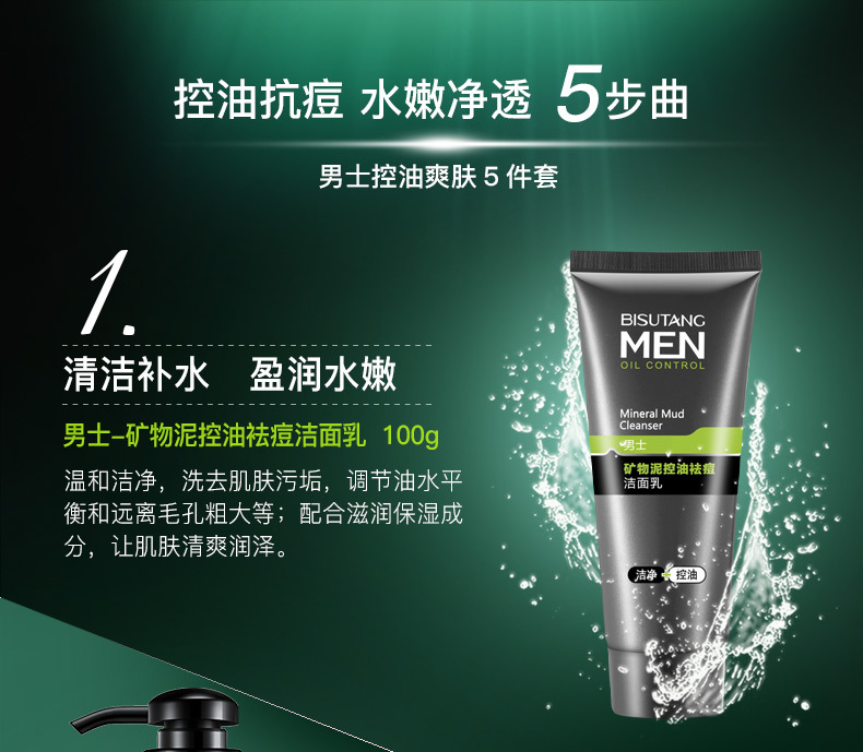 【美妆个护】碧素堂男士护肤五件套洁面乳爽肤水滋润霜面膜护肤套装美妆