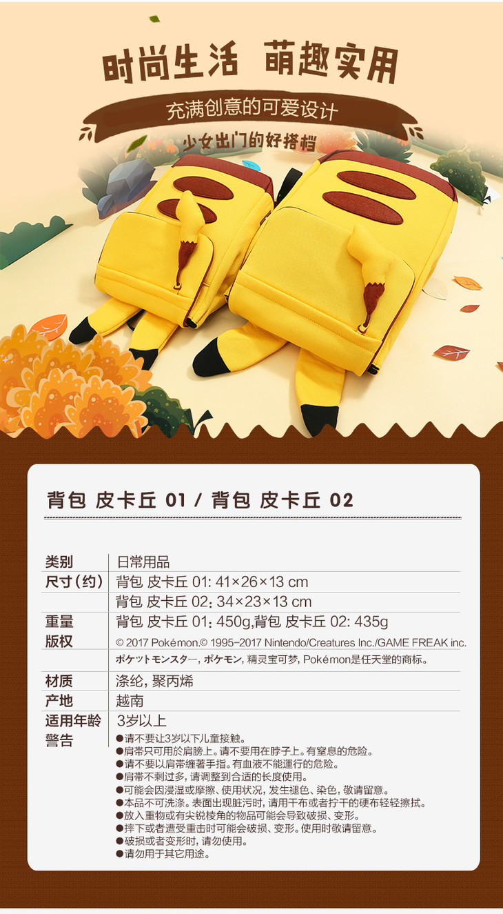 精灵宝可梦 皮卡丘限定双肩背包