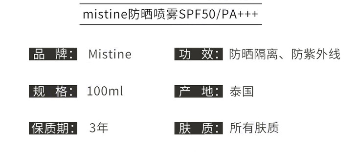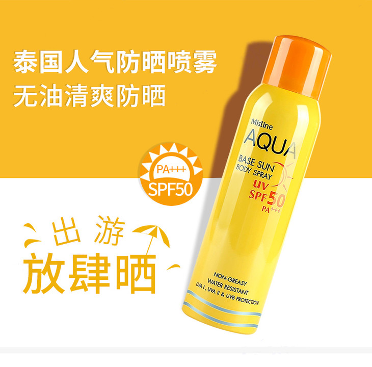 【保税区包邮直发】泰国 mistine小黄瓶防晒喷雾spf50++ 100g