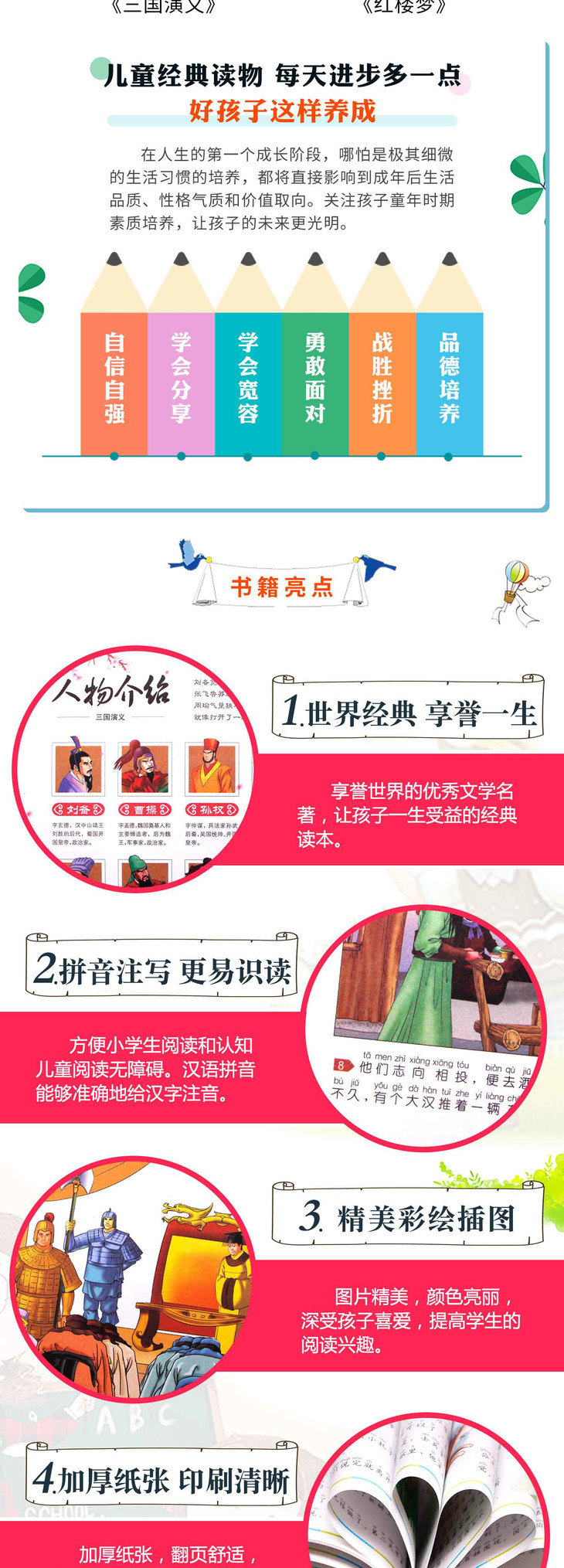 四大名著连环画 全套 注音版4册彩色正版拼音注音老版中国古典幼儿 小学生红楼梦西游记 水浒传三国演义 漫画书故事书小人书珍藏版