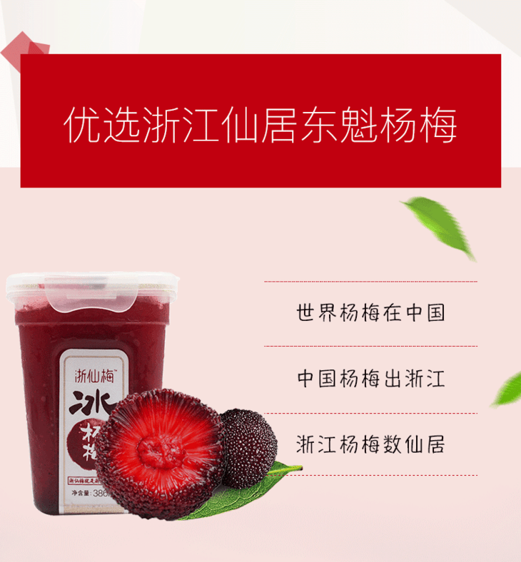 浙江 • 鲜榨杨梅冰 0色素防腐 消暑良品 冰爽开胃 生津止渴 1瓶=18颗仙居大杨梅