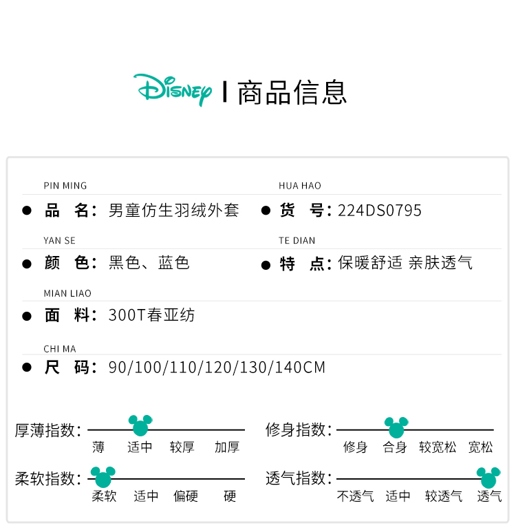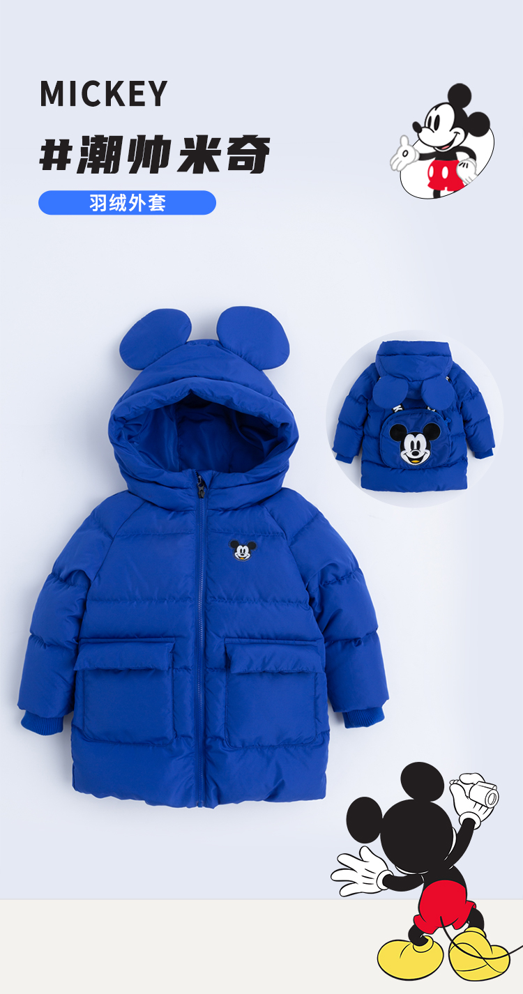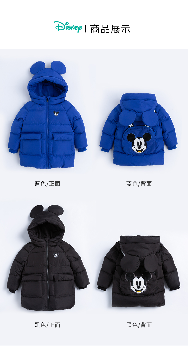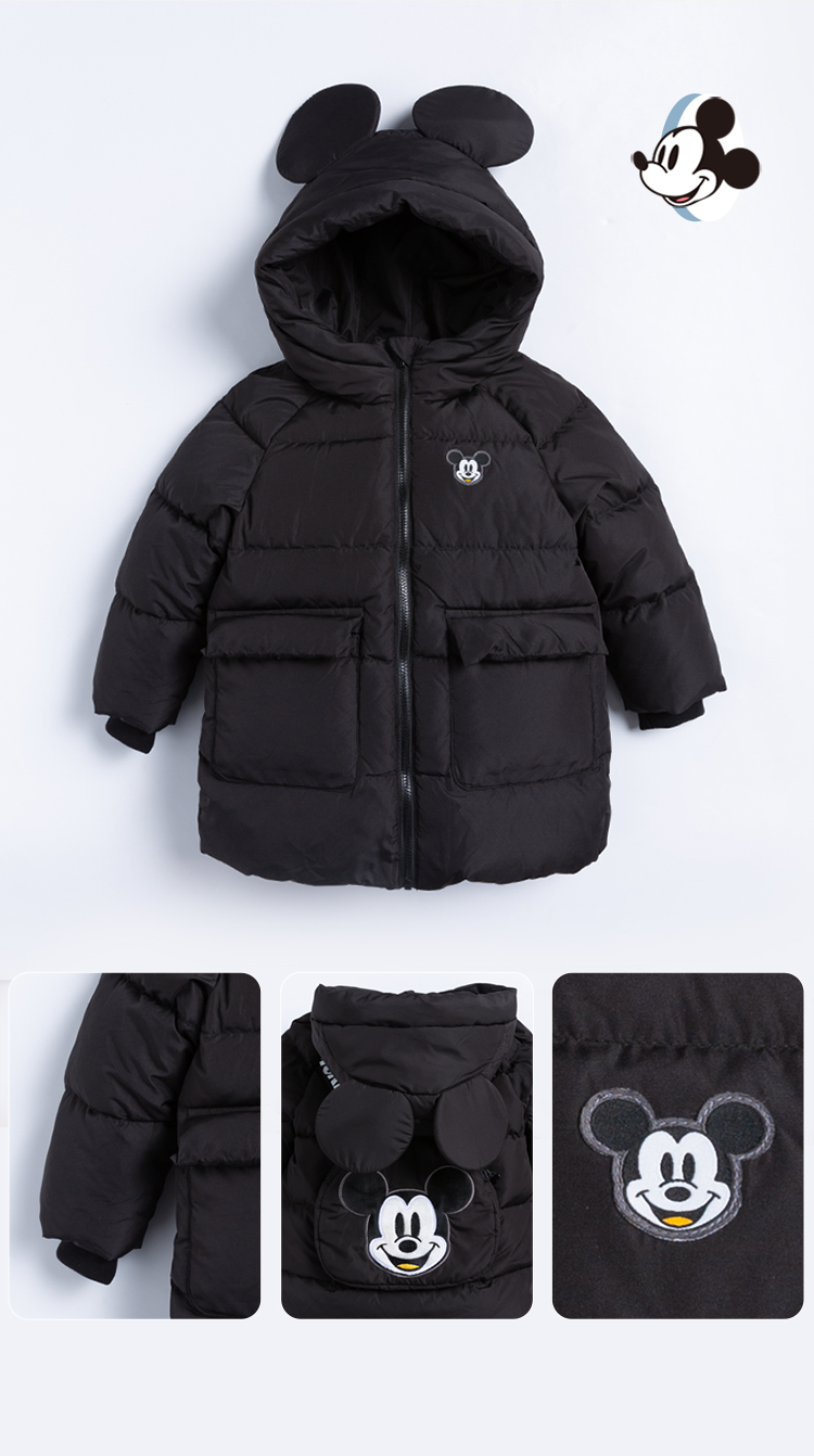 迪士尼童装冬季潮帅米奇印花羽绒服中长款连帽保暖外套224DS0795