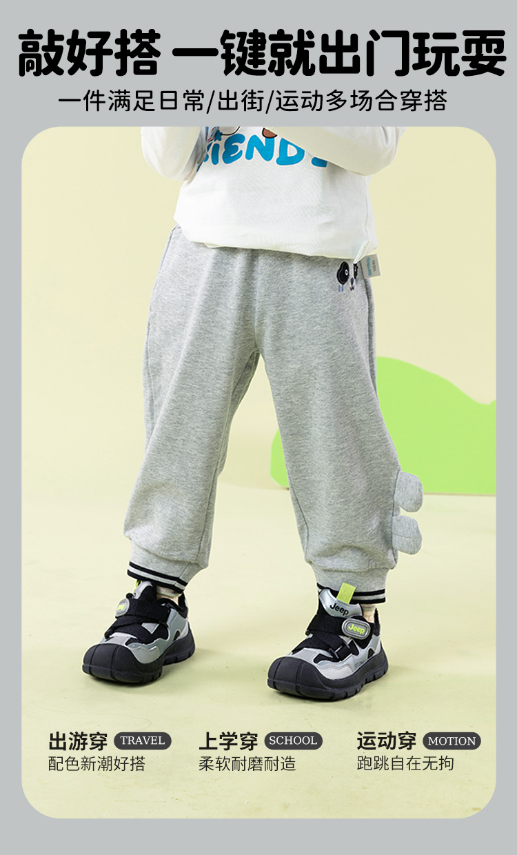 贝贝怡亲肤纯棉男童裤子25春秋简约百搭透气绵软儿童束脚休闲裤子ZB1EK020