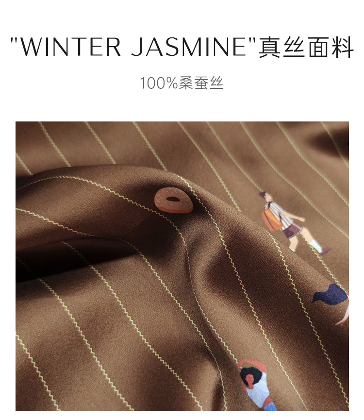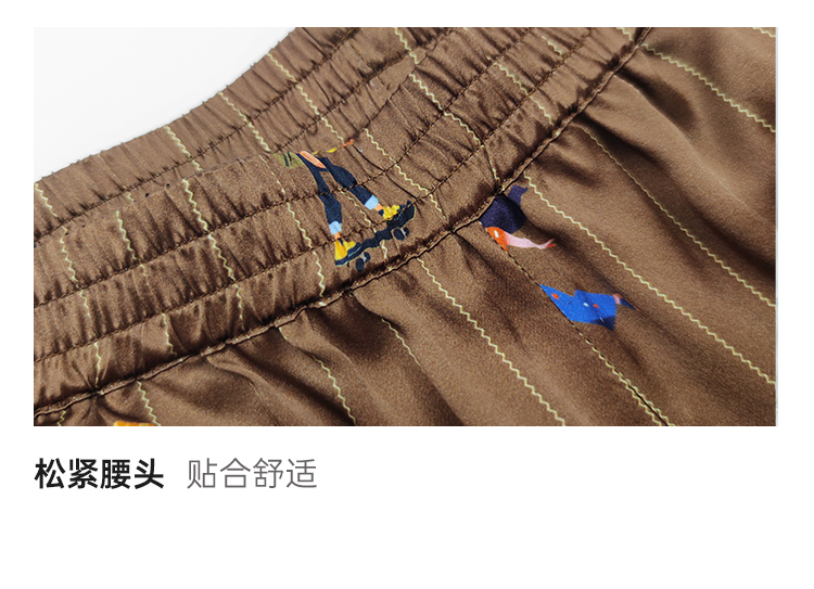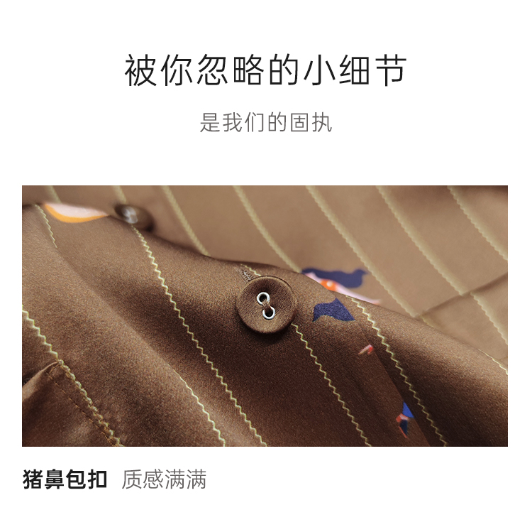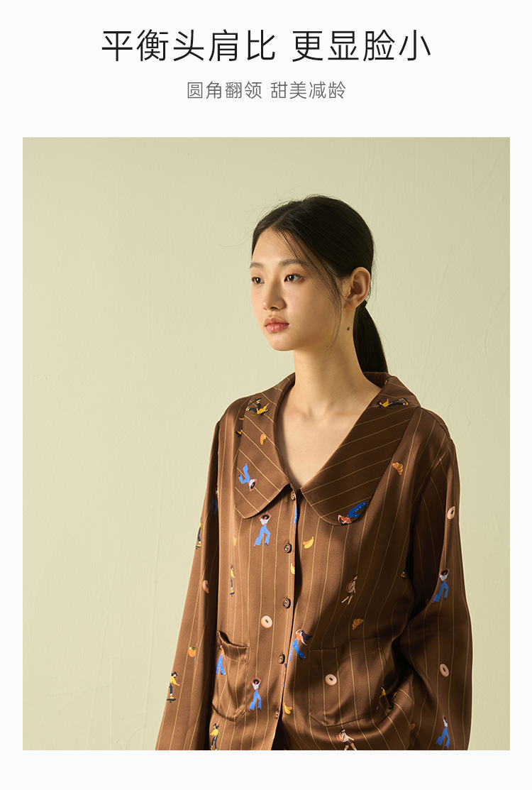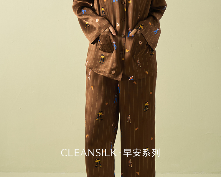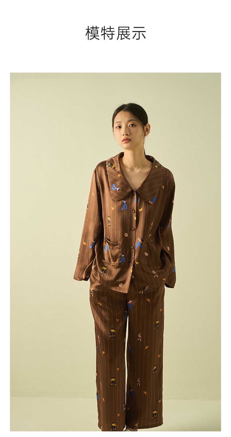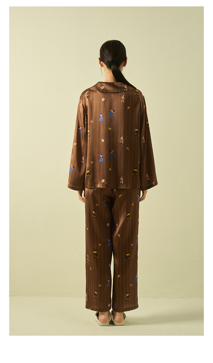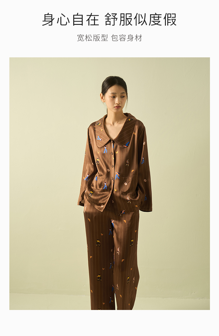 “早安系列”桑罗真丝咖色条纹印花女士睡衣套装费尔岛风情侣款