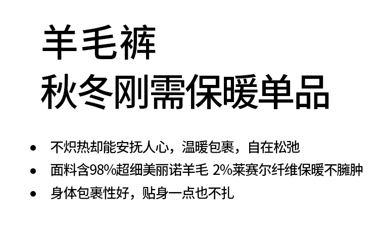 【伊罗特 · 专注羊毛裤三十年】 鄂尔多斯超细美丽诺羊毛100%精纺无压经典款显瘦保暖羊毛裤男款91611/女款91612