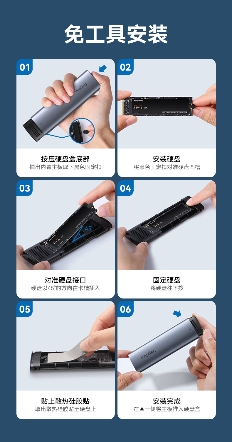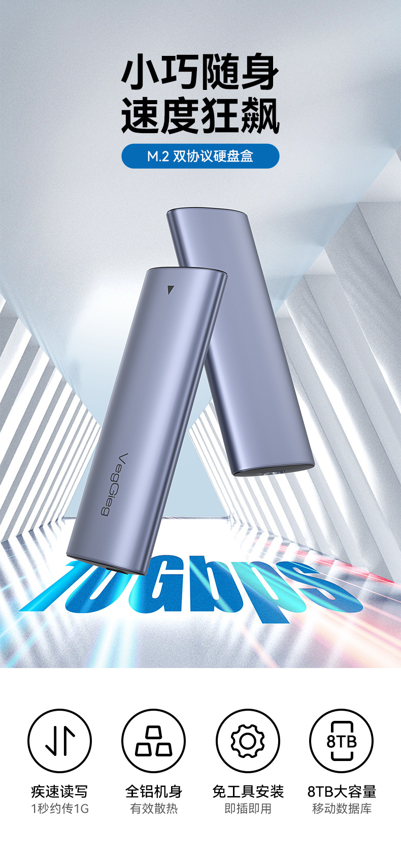 严选M2移动硬盘盒 USB3.1双协议10GB速率固态type-C电脑8T硬盘盒1个