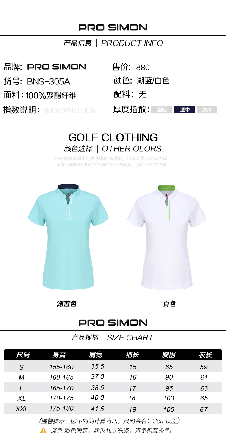 BNS-305A (PROSIMON高尔夫春夏女款透气小立领短袖T恤)