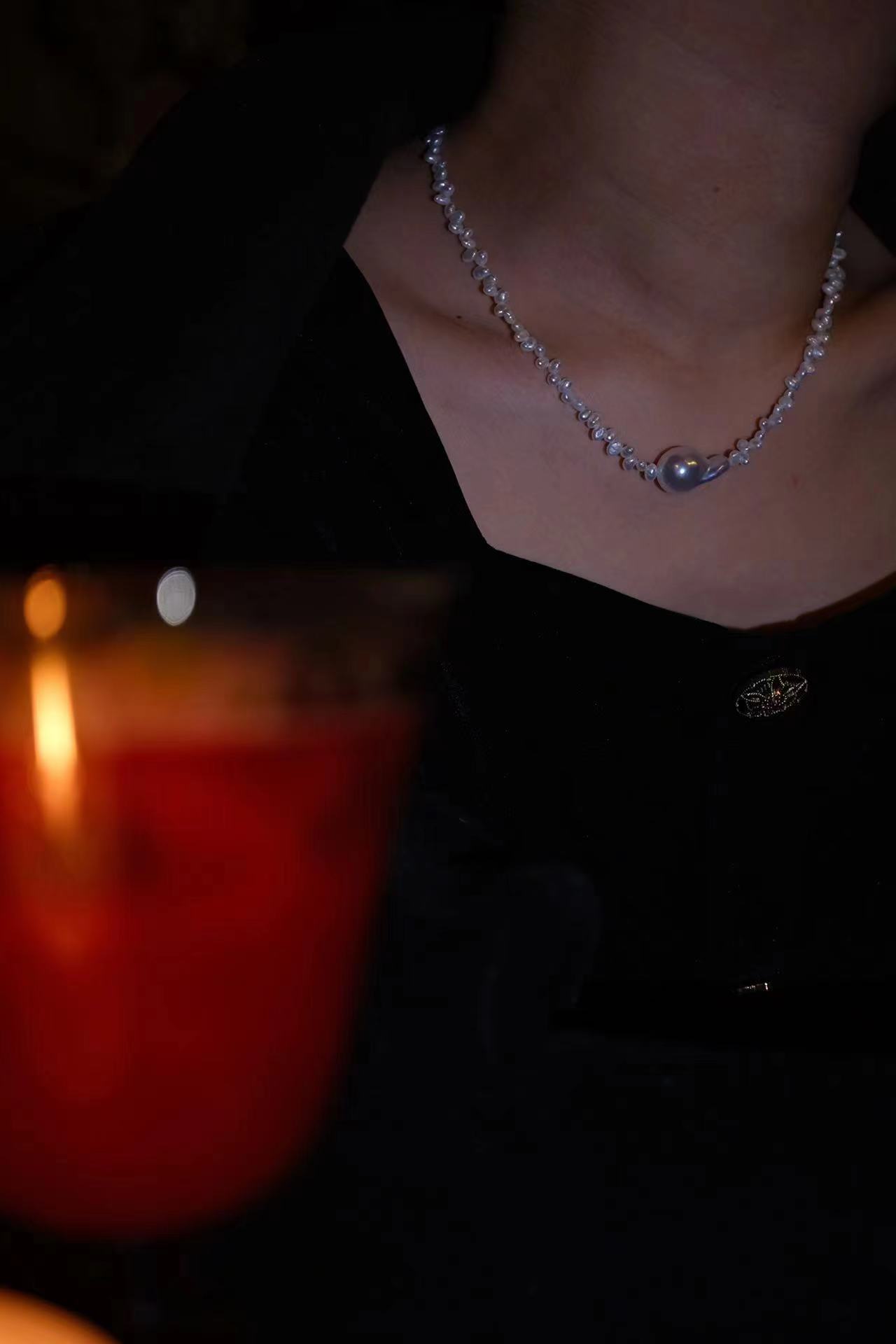 【商品信息】淡水珍珠项链,花瓣巴洛克5-6mm、大巴洛克15-16mm、配件S925银、项链长度40+5CM