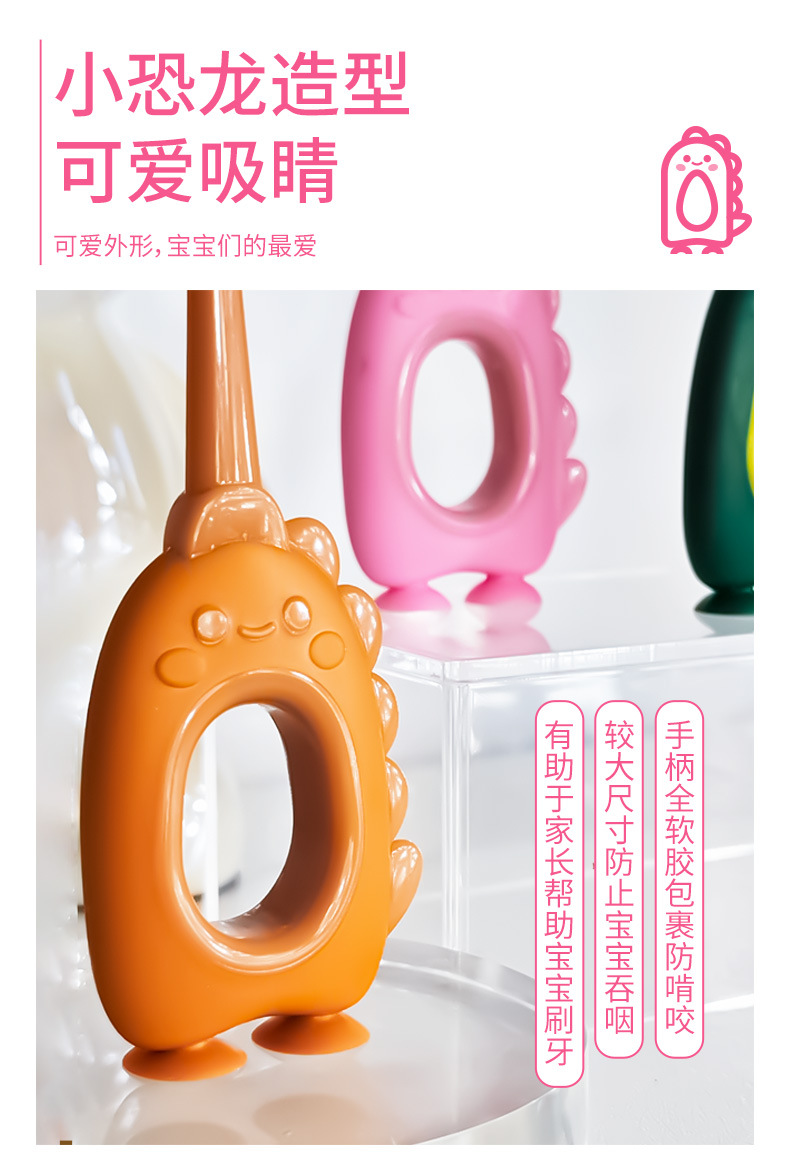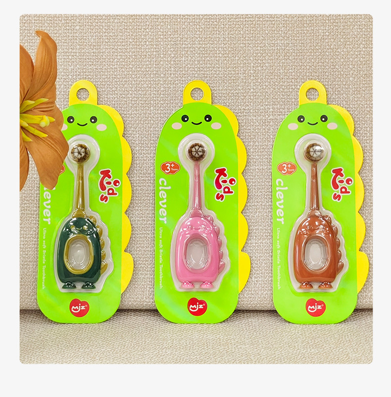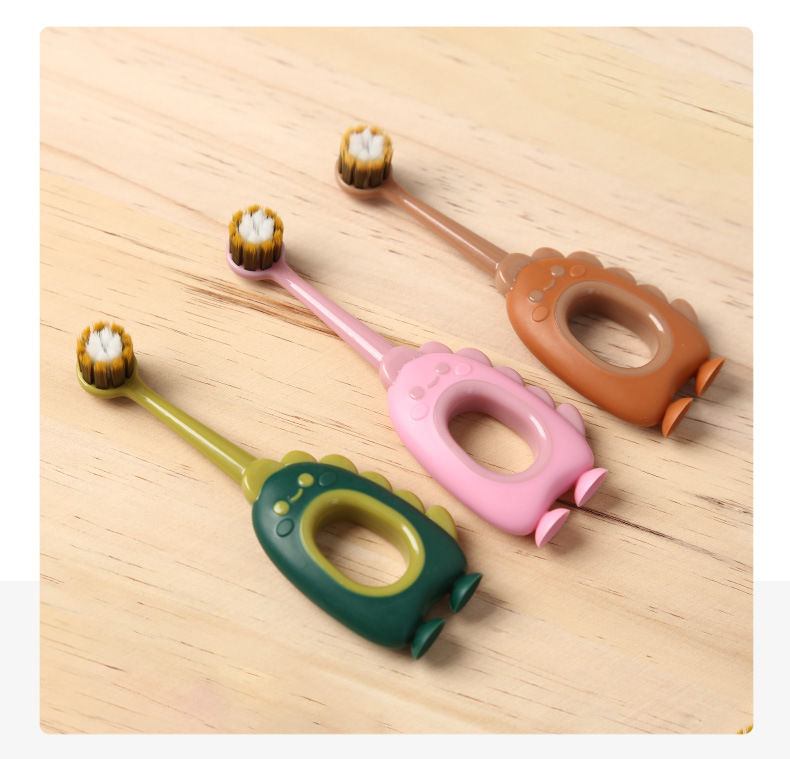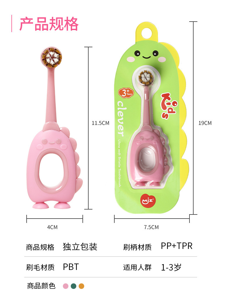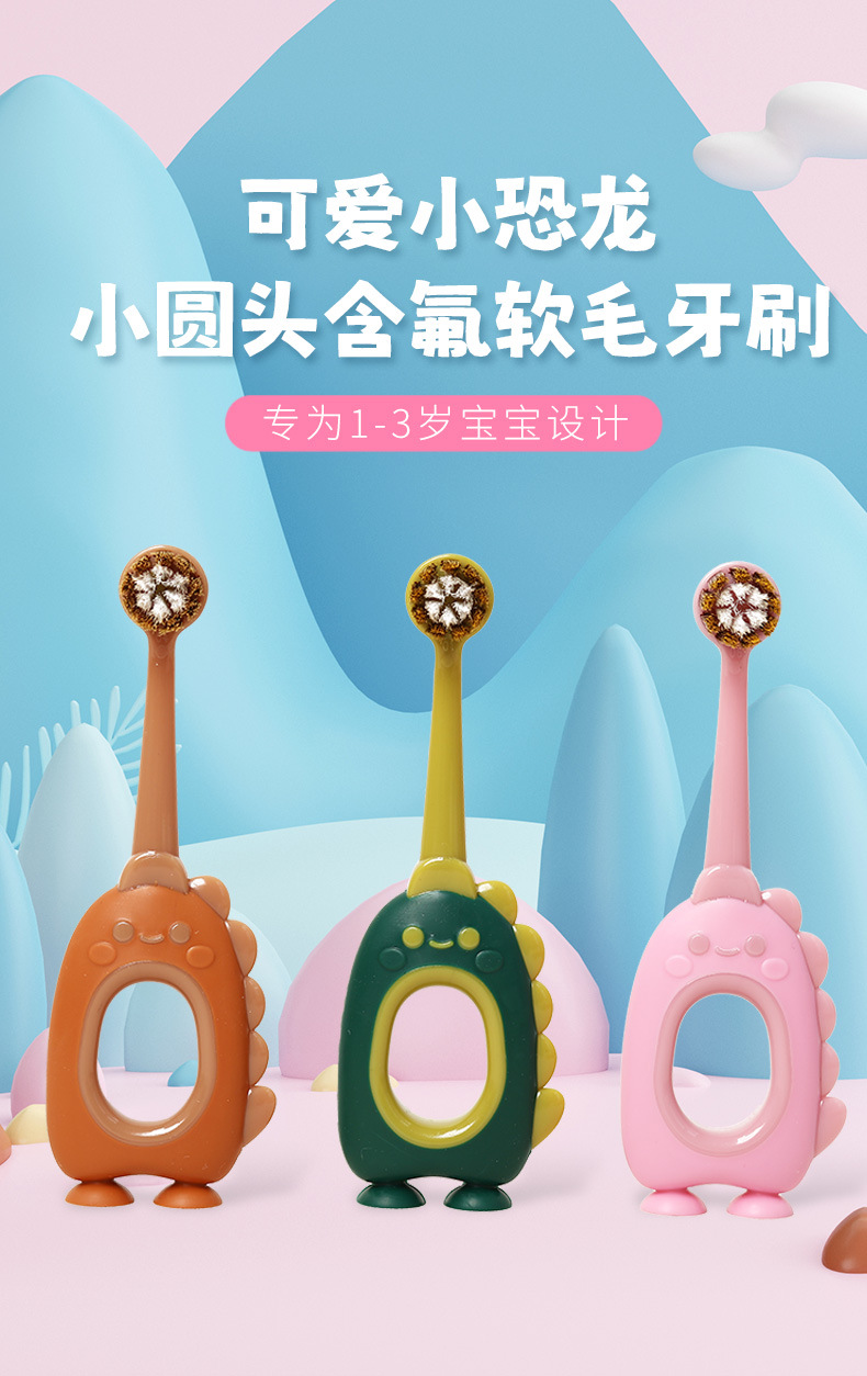 【萌趣恐龙含氟软毛口腔小卫士】儿童软毛牙刷含氟刷丝0-3岁,纤薄正圆小头 彩炭+含氟刷毛,卡通婴幼儿宝宝小圆头可爱牙刷