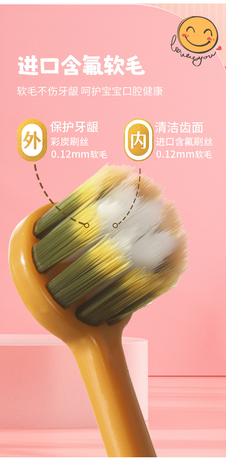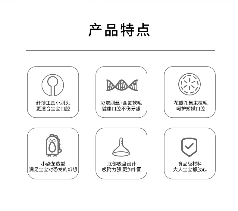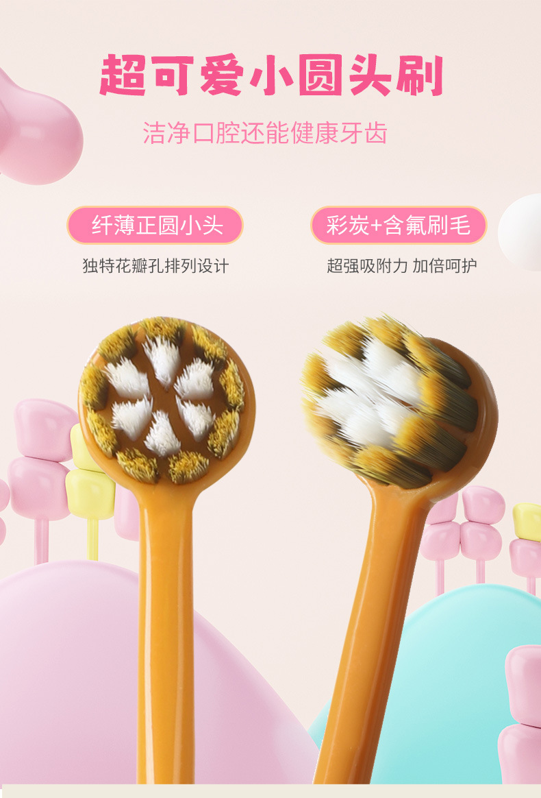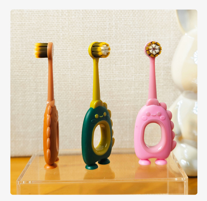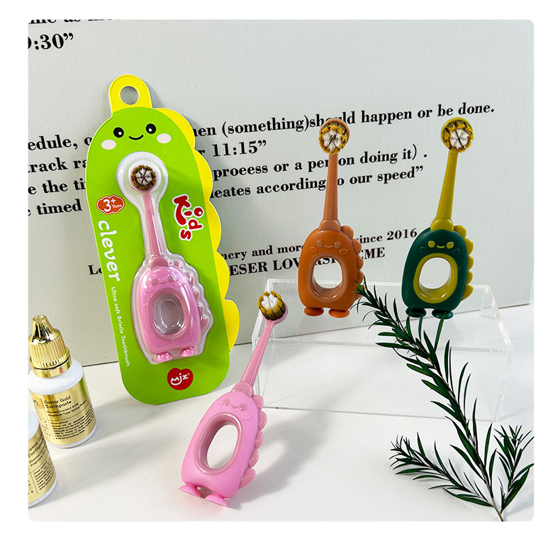 【萌趣恐龙含氟软毛口腔小卫士】儿童软毛牙刷含氟刷丝0-3岁,纤薄正圆小头 彩炭+含氟刷毛,卡通婴幼儿宝宝小圆头可爱牙刷