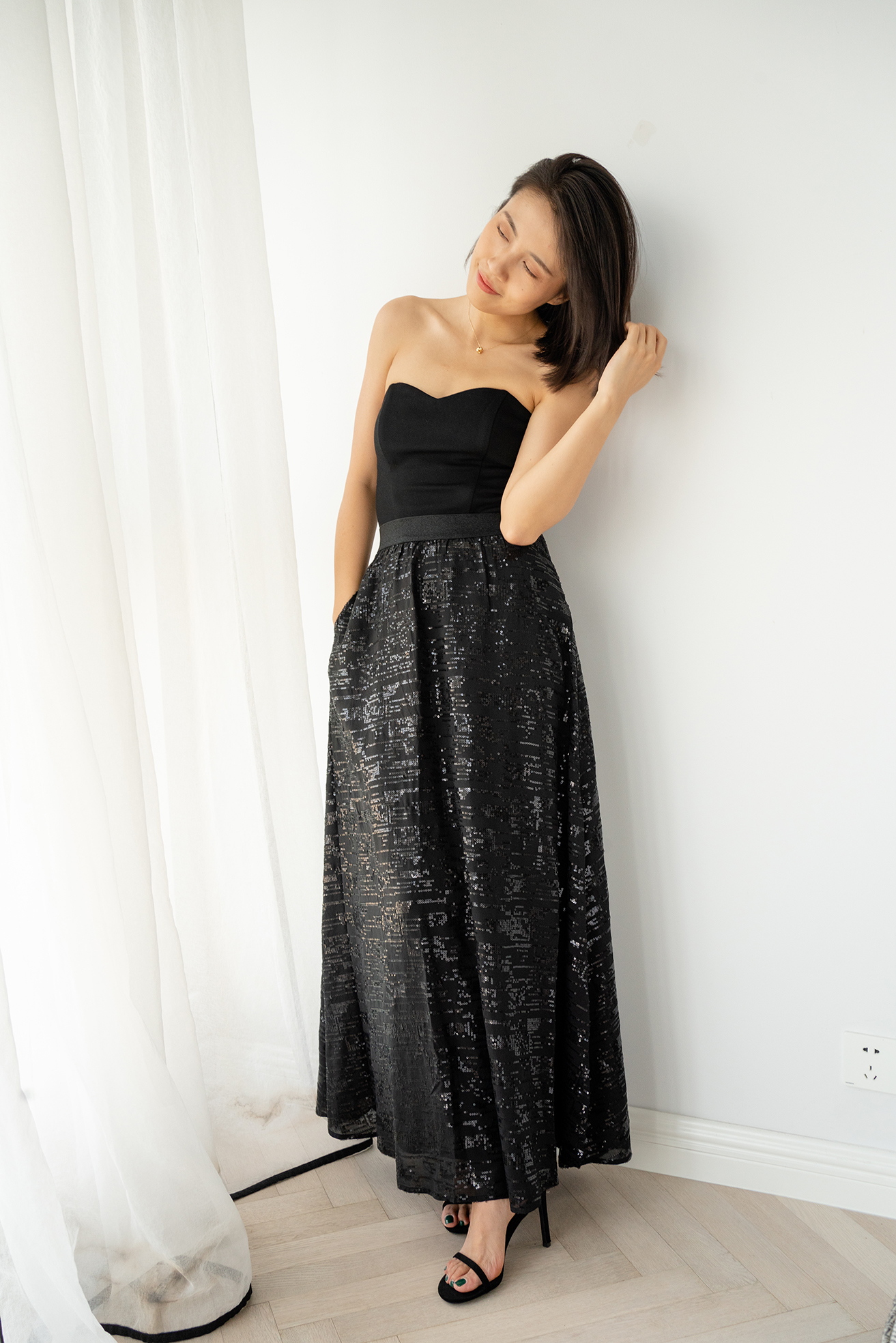 CG|Light Sequin Slim Maxi Skirt [轻薄亮片半裙]