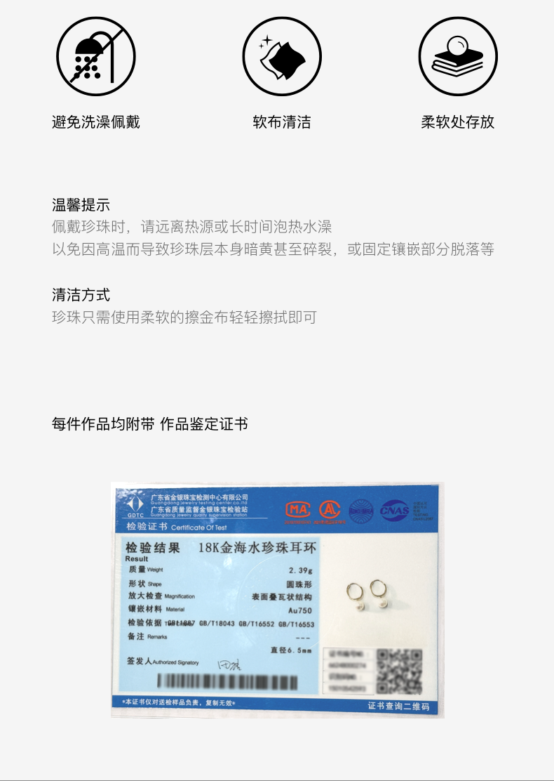 「莹」系列 珍珠耳坠 Akoya 6.5mm