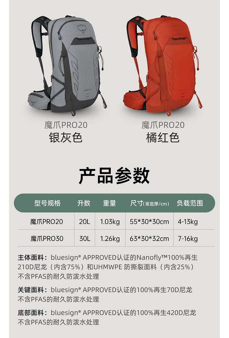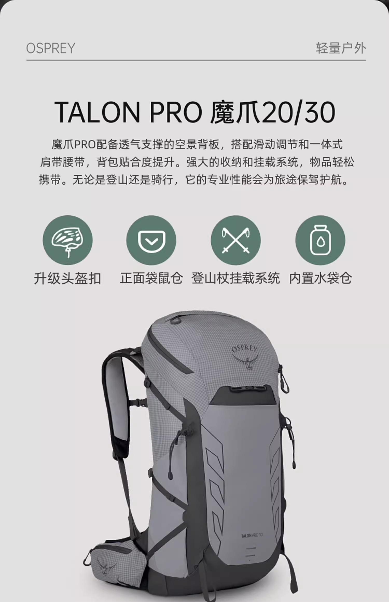 OSPREY Talon Pro魔爪Pro户外登山包徒步双肩背包男款2025年新款