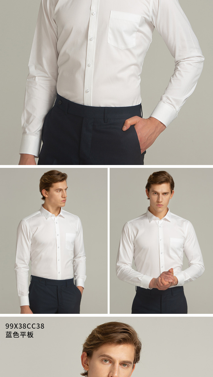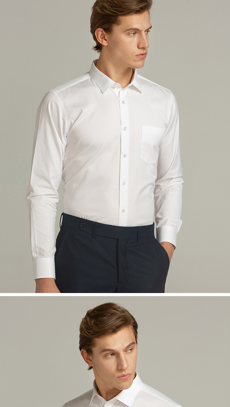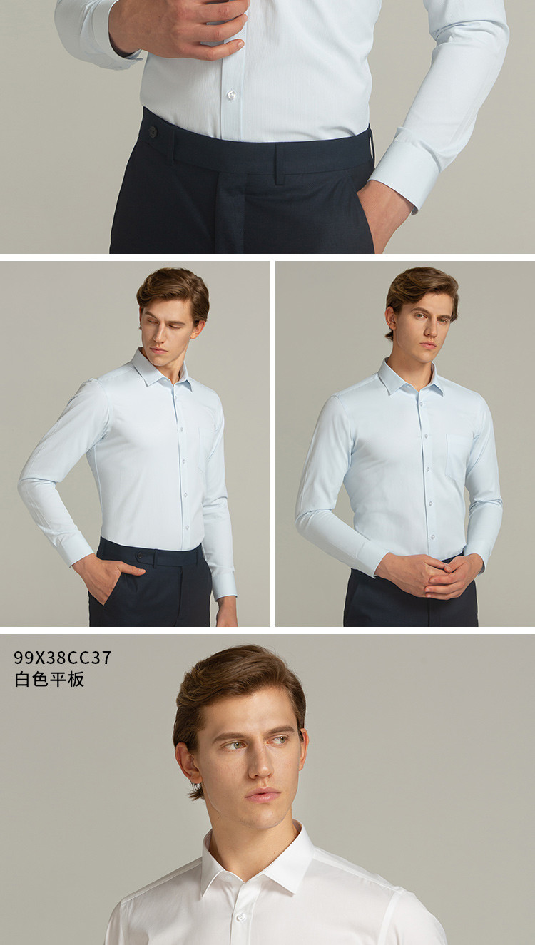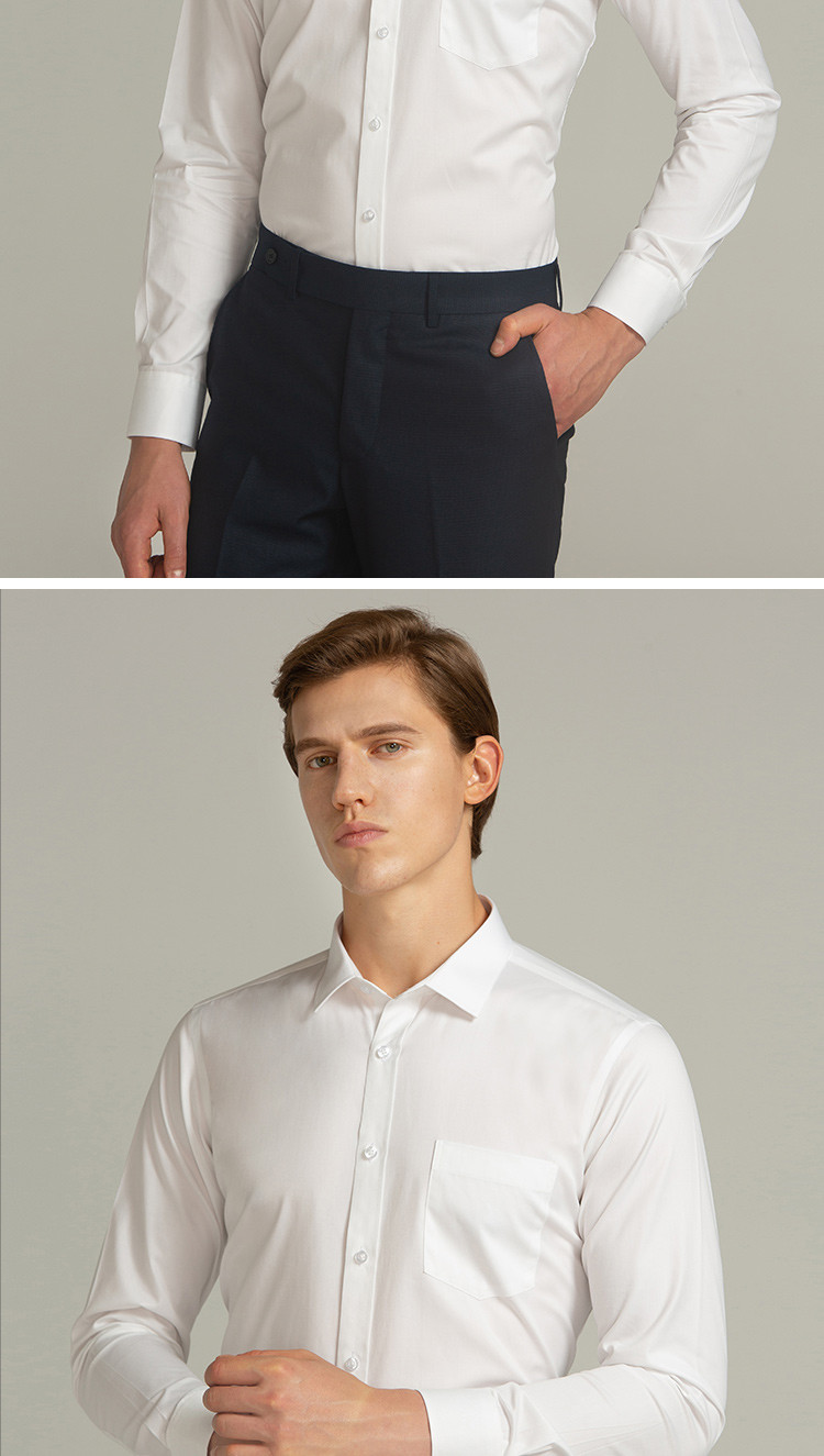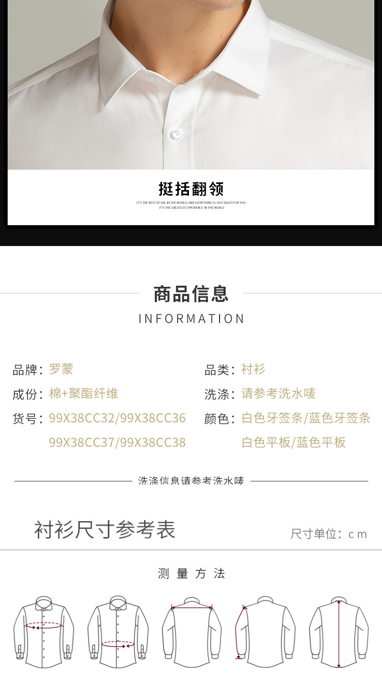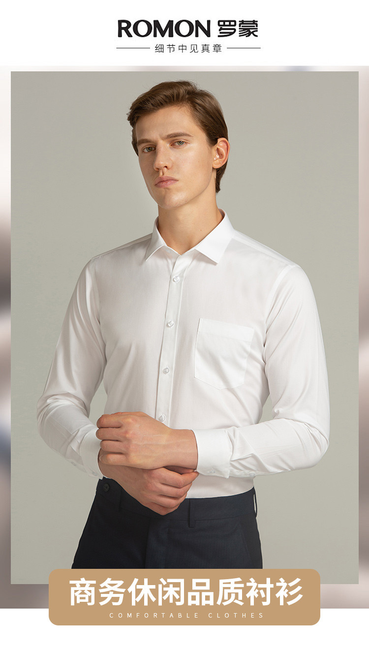 【40棉】罗蒙衬衫男长袖正装商务男士通勤百搭棉质纯色衬衣男