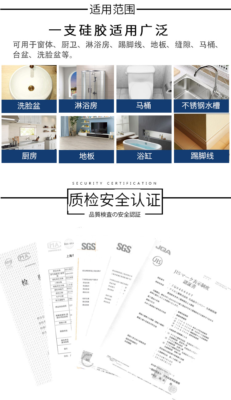 日本进口环保地板玻璃胶防水防霉厨卫马桶胶水中性硅胶密封胶灰色