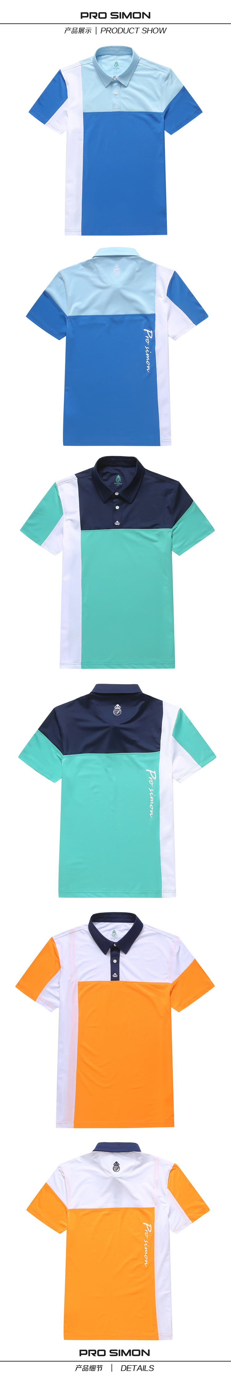BLS-001C(PROSIMON高尔夫男款春夏短袖不对成拼接翻领Polo衫)