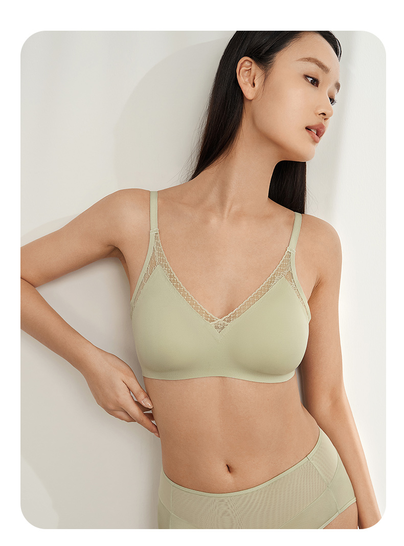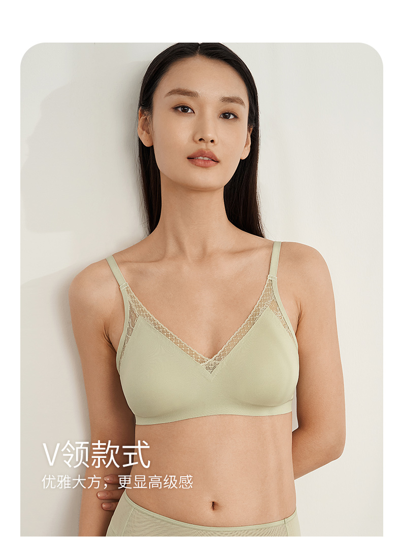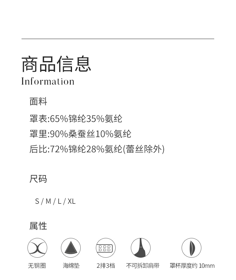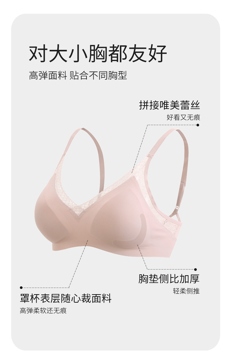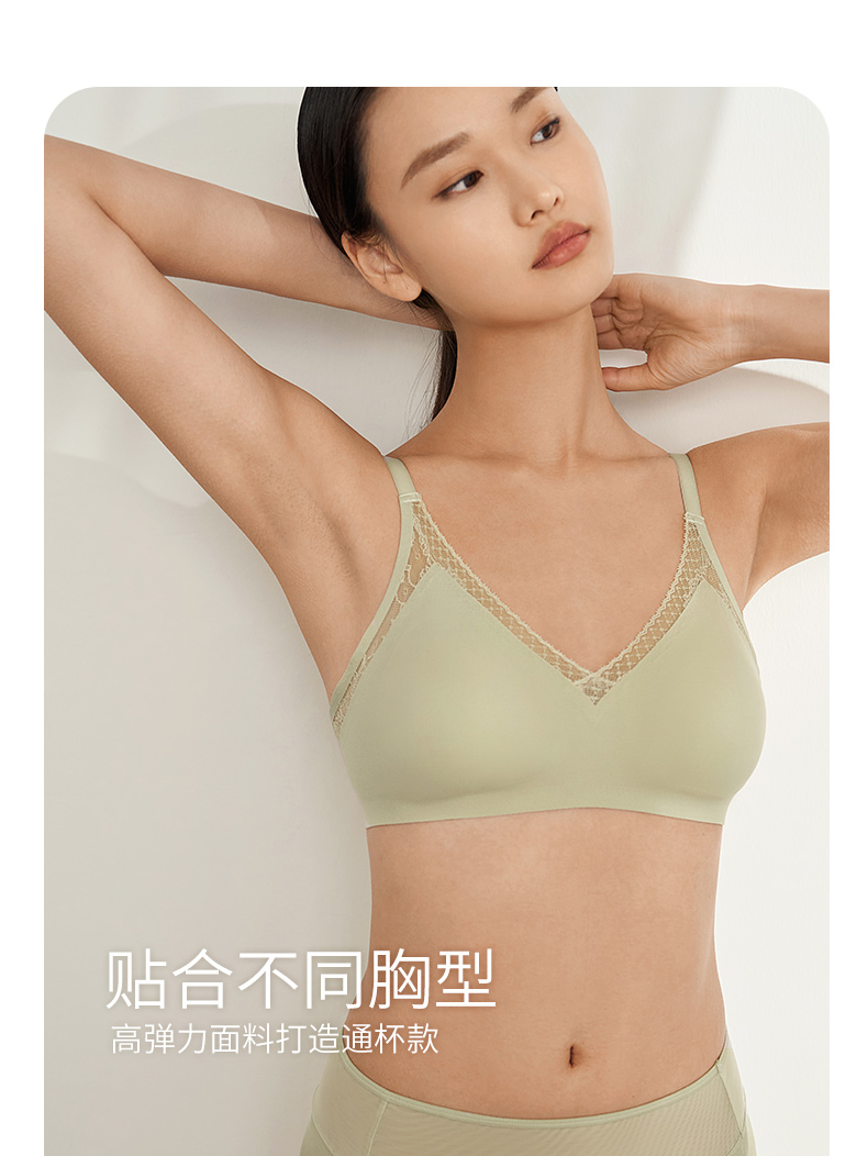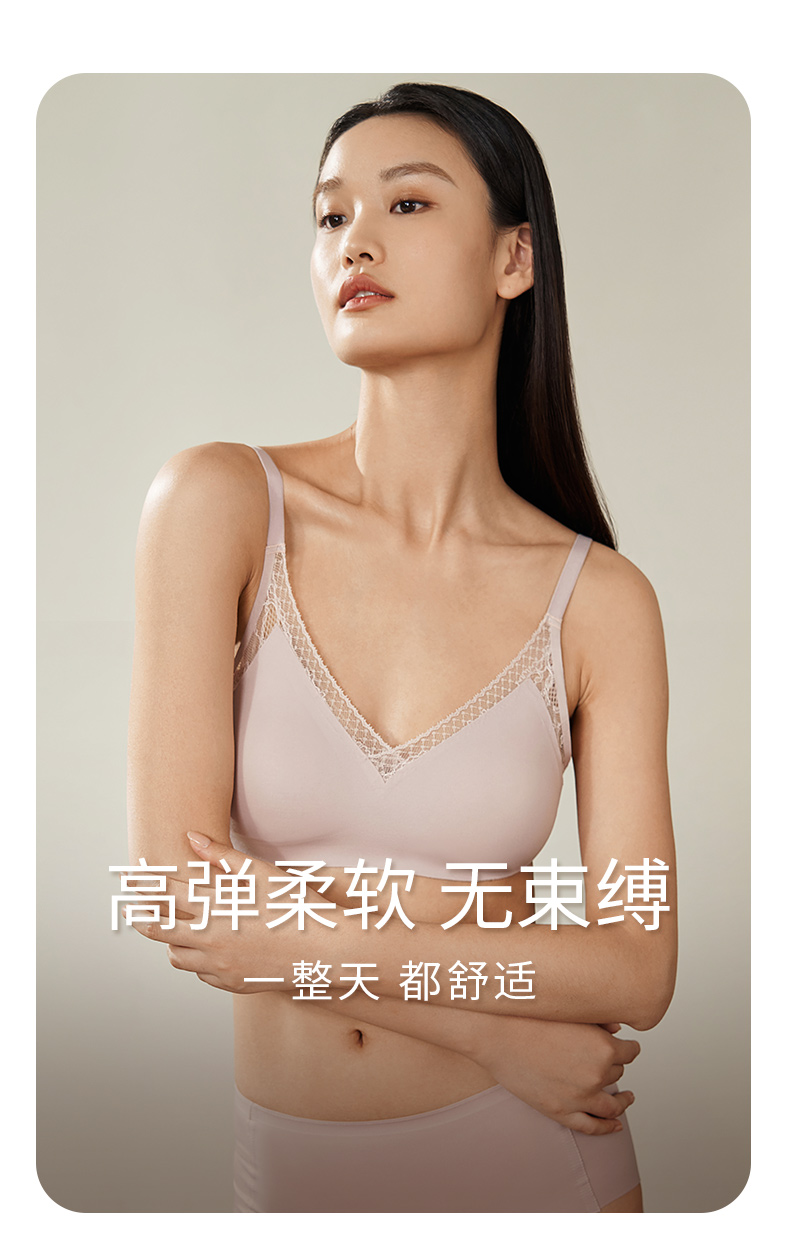 金三塔高弹桑蚕丝内里文胸宽松透气蕾丝无钢圈舒适无痕内衣女 NZFEA302