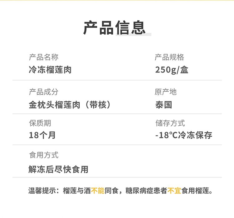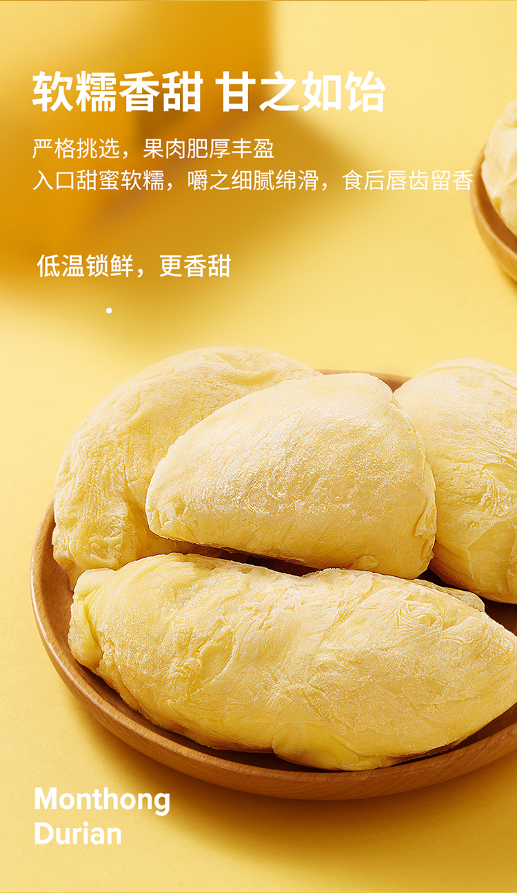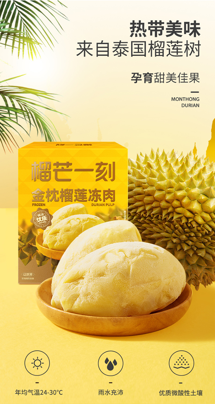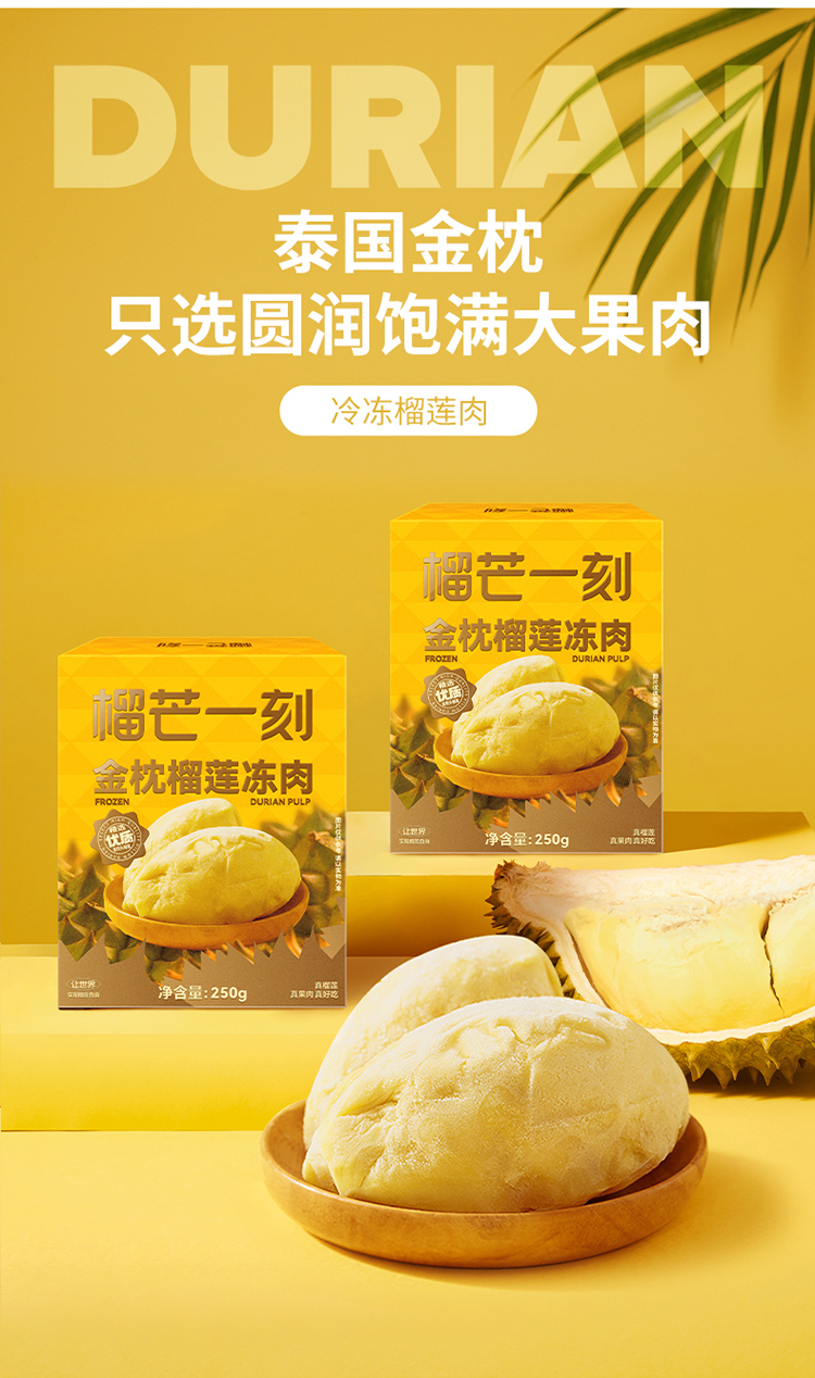 【榴莲果肉】榴莲纯果肉小金条100克*5盒 |榴莲果肉250克*2盒 泰国直采树熟无核榴莲果肉,浓郁香醇