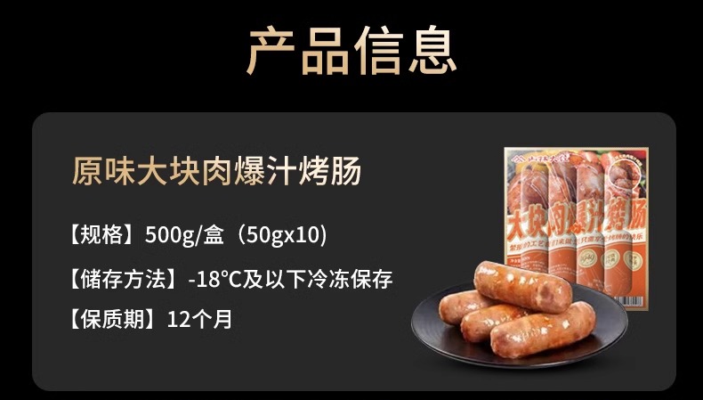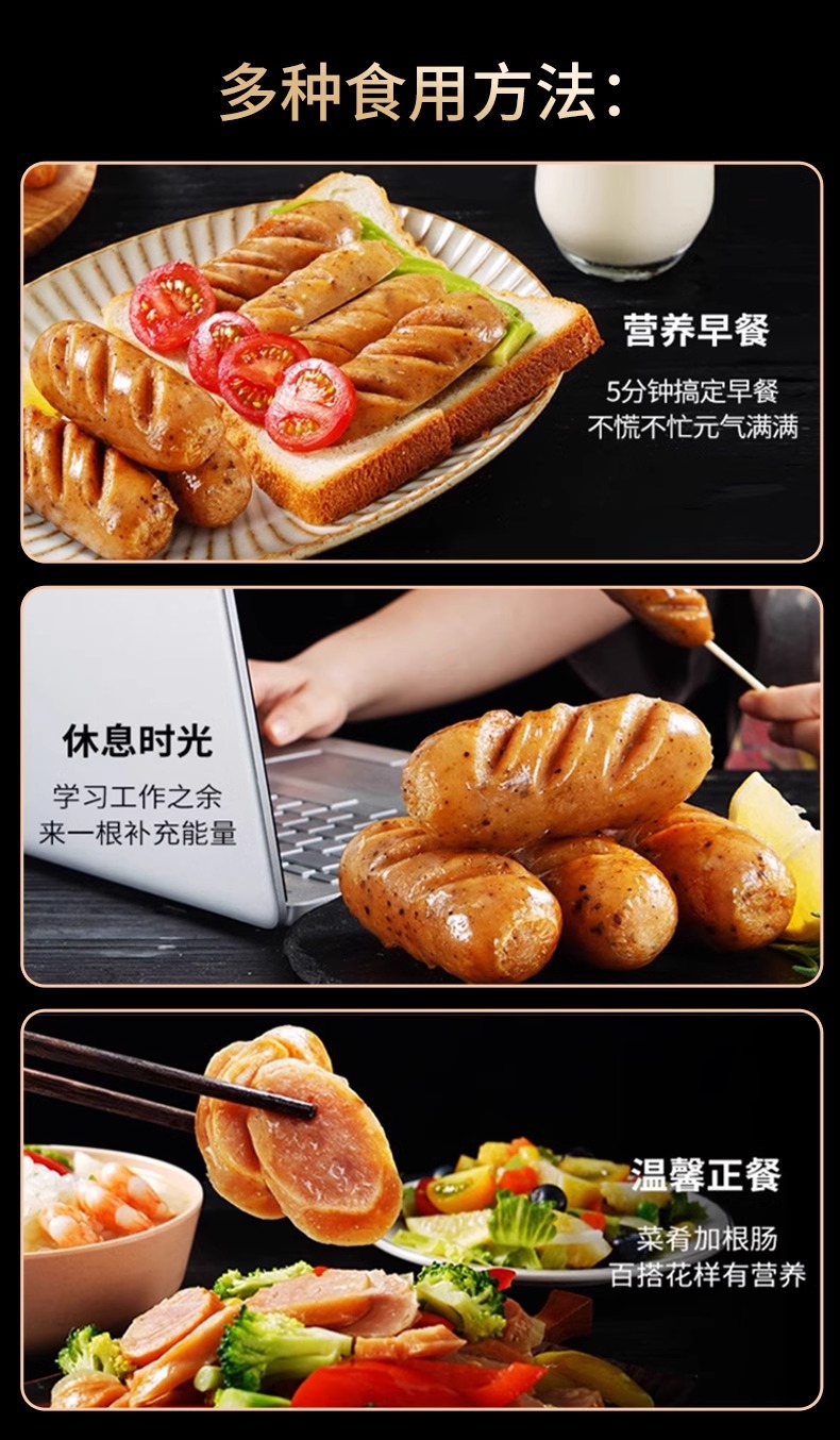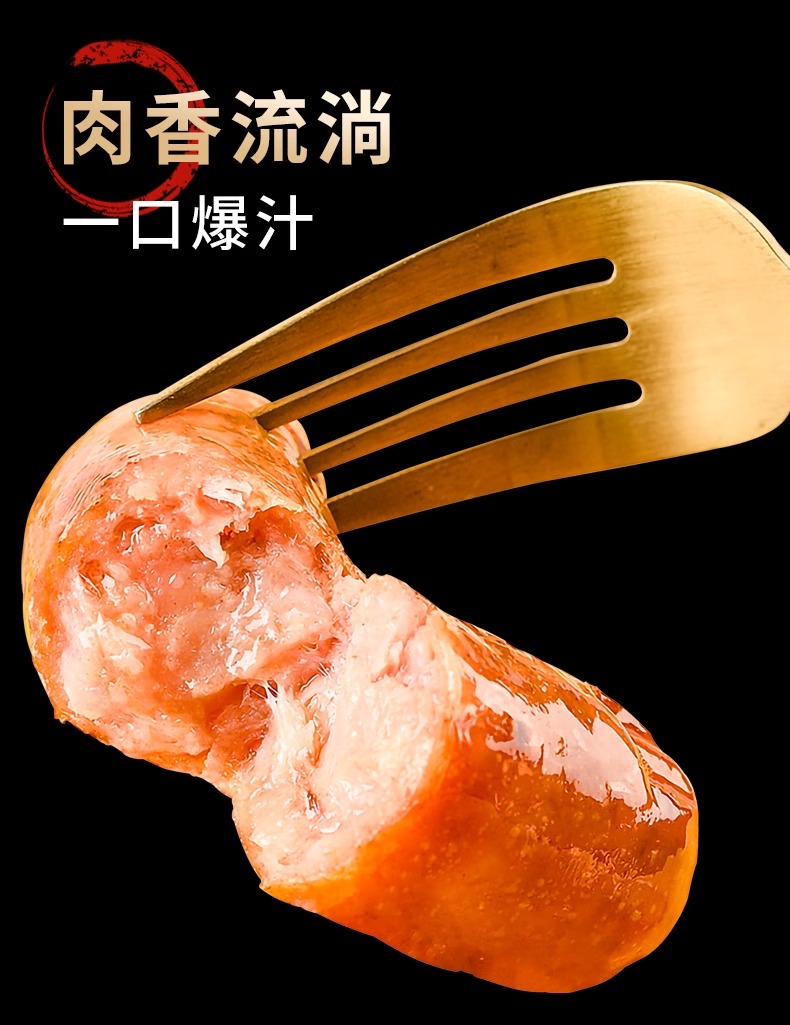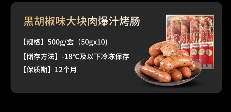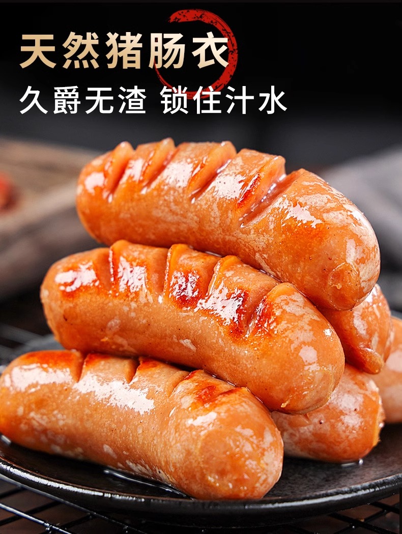 山林大红烤肠肉肠脆皮火山石香肠黑椒风味热狗肠空气炸锅非淀粉肠