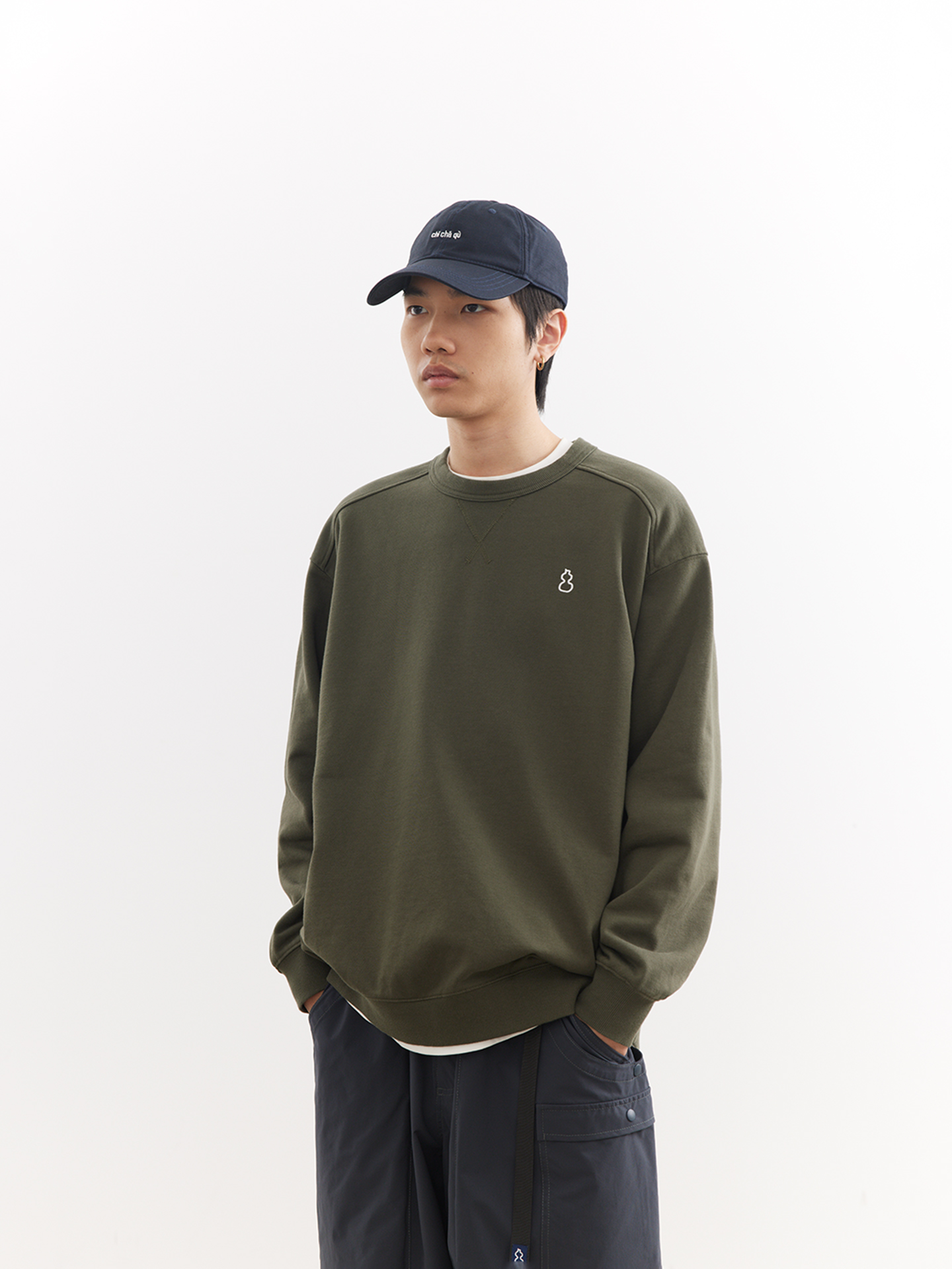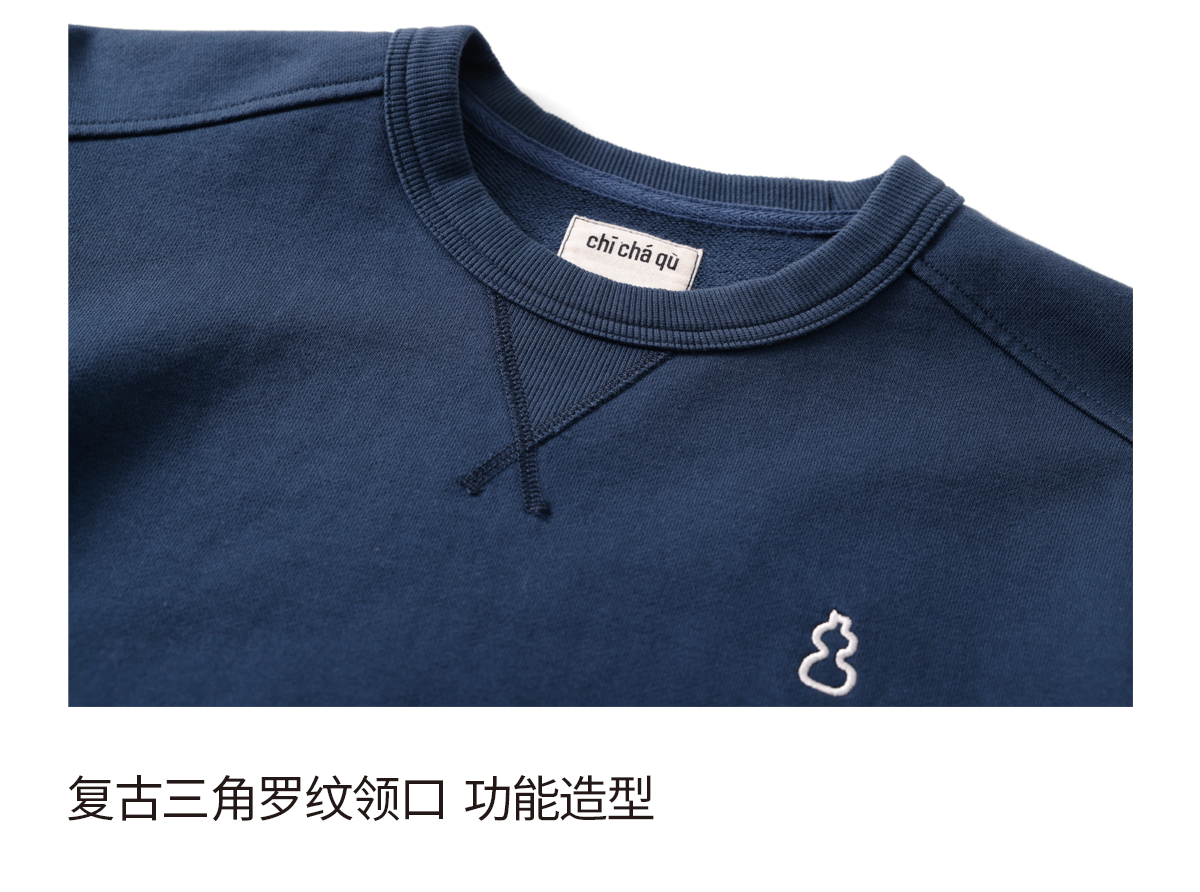 吃茶去chichaqu26春夏经典宽松休闲刺绣全棉圆领卫衣复古山系百搭