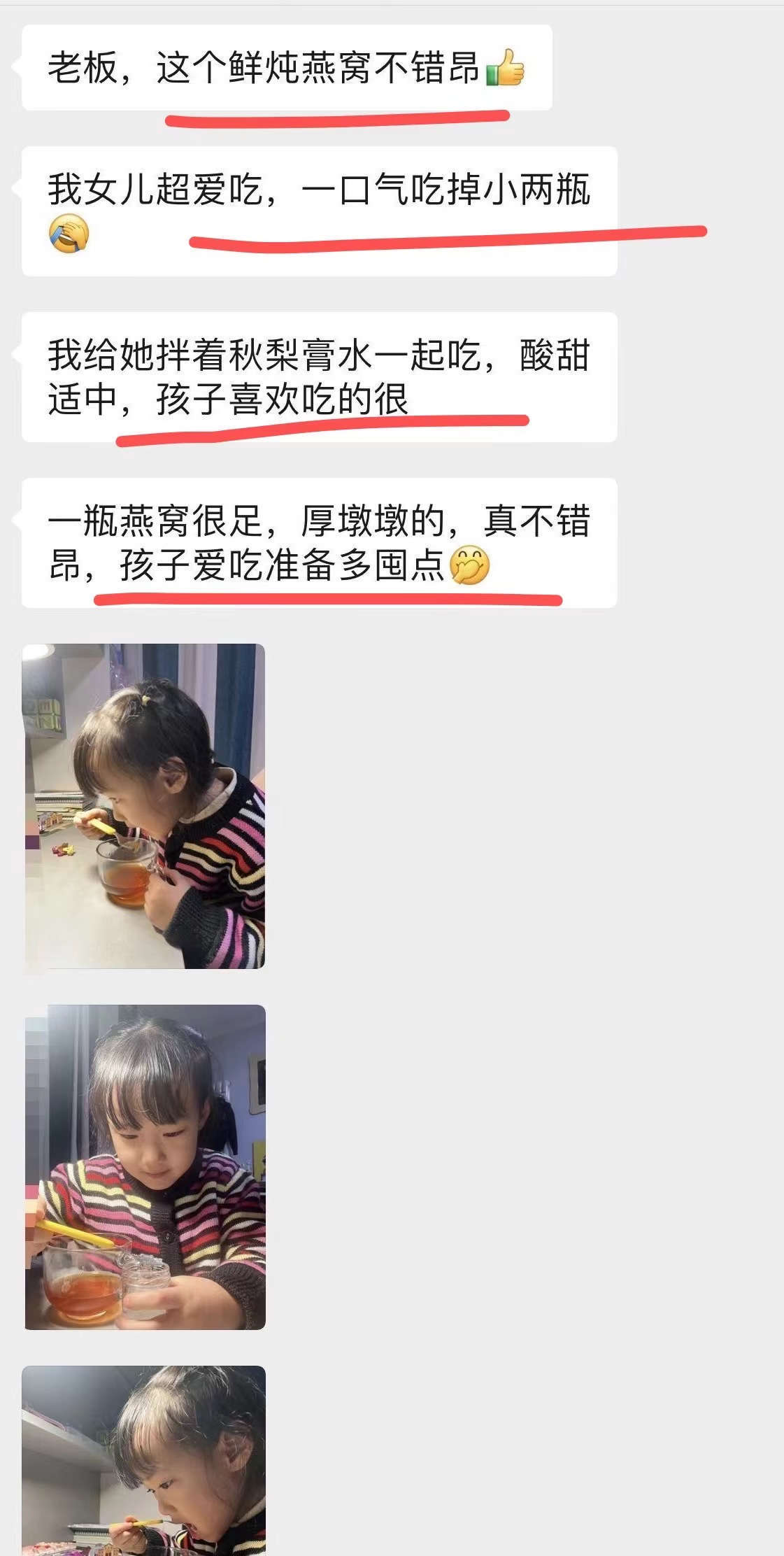 【常温鲜炖燕窝)采用专利炖煮工艺,最大的保留燕窝的营养成分,口感滑嫩爽口,方便快捷,开瓶即食!入口Q弹饱满,口感醇厚,料真的很足!!好好吃!-口一口停不下来!含糖量也很低,很淡很淡的甜味~