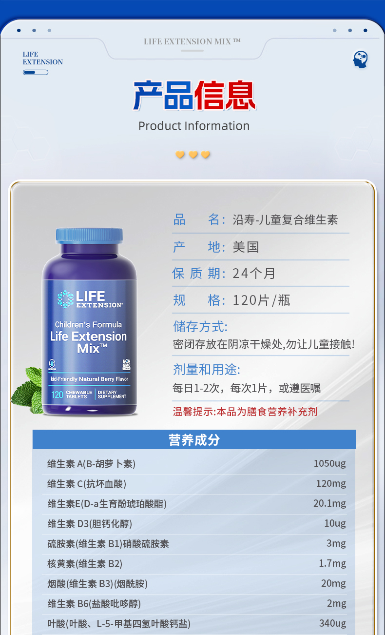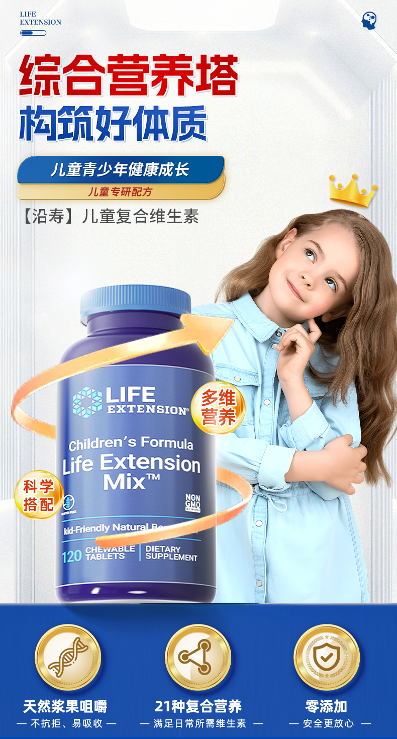 沿寿LIFE EXTENSION 儿童配方维生素矿物质片120粒